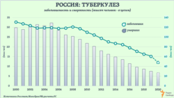 Простые расчеты по тем же предварительным оценкам показывают, что уровень смертности от туберкулеза в стране в 2020 году был в 4,4 раза ниже, чем в 2000-ом: