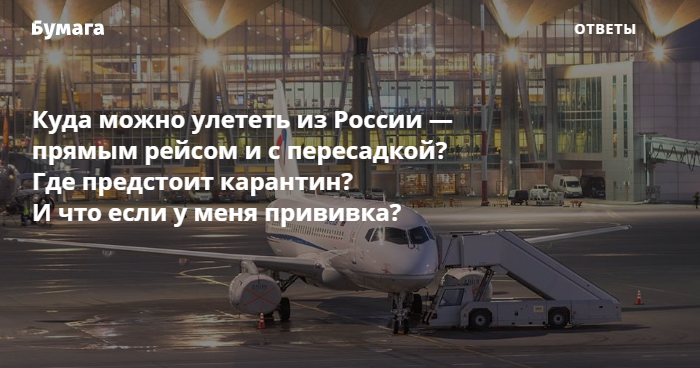 Куда можно улететь из России — прямым рейсом и с пересадкой? Где предстоит карантин? И что если у меня прививка?