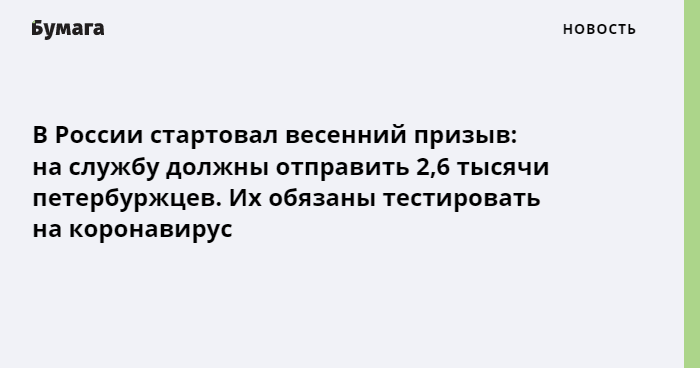 Призывные пункты будут работать до 15 июля. Как говорят в Смольном, минимум 20 % новобранцев должны иметь высшее образование: часть из них направят в научные роты в Военно-морской академии Кузнецова и в Военно-медицинской академии имени Кирова.