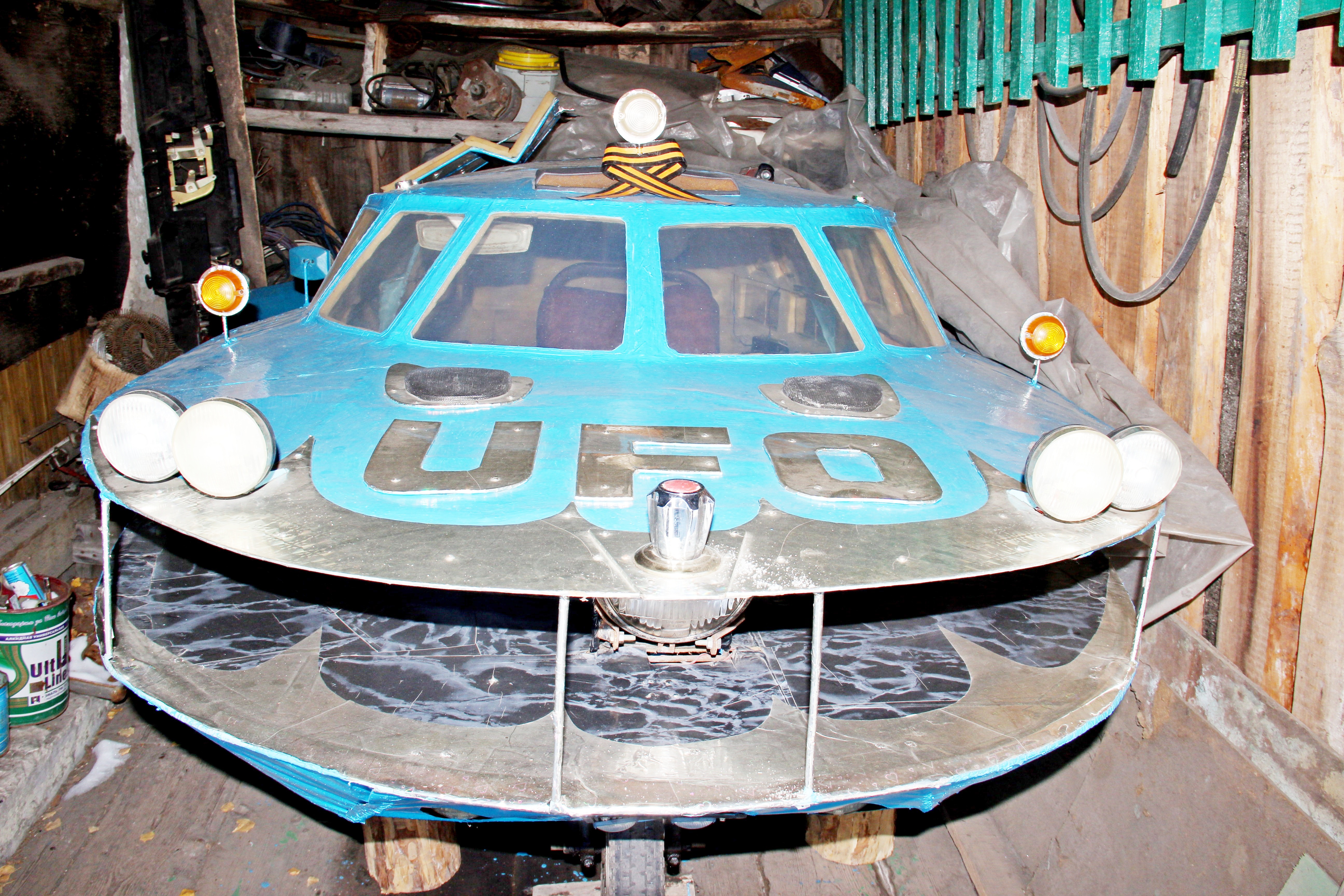 59-летний Виктор Гришаев из деревни Байкал, что в 40 километрах от Омска, в детстве мечтал быть летчиком, но стал, по его словам, "самодельщиком". В свободное от крестьянских забот время он мастерит роботов, делает радиоприемники из пачки сигарет и катается на собственноручно сконструированном НЛО.