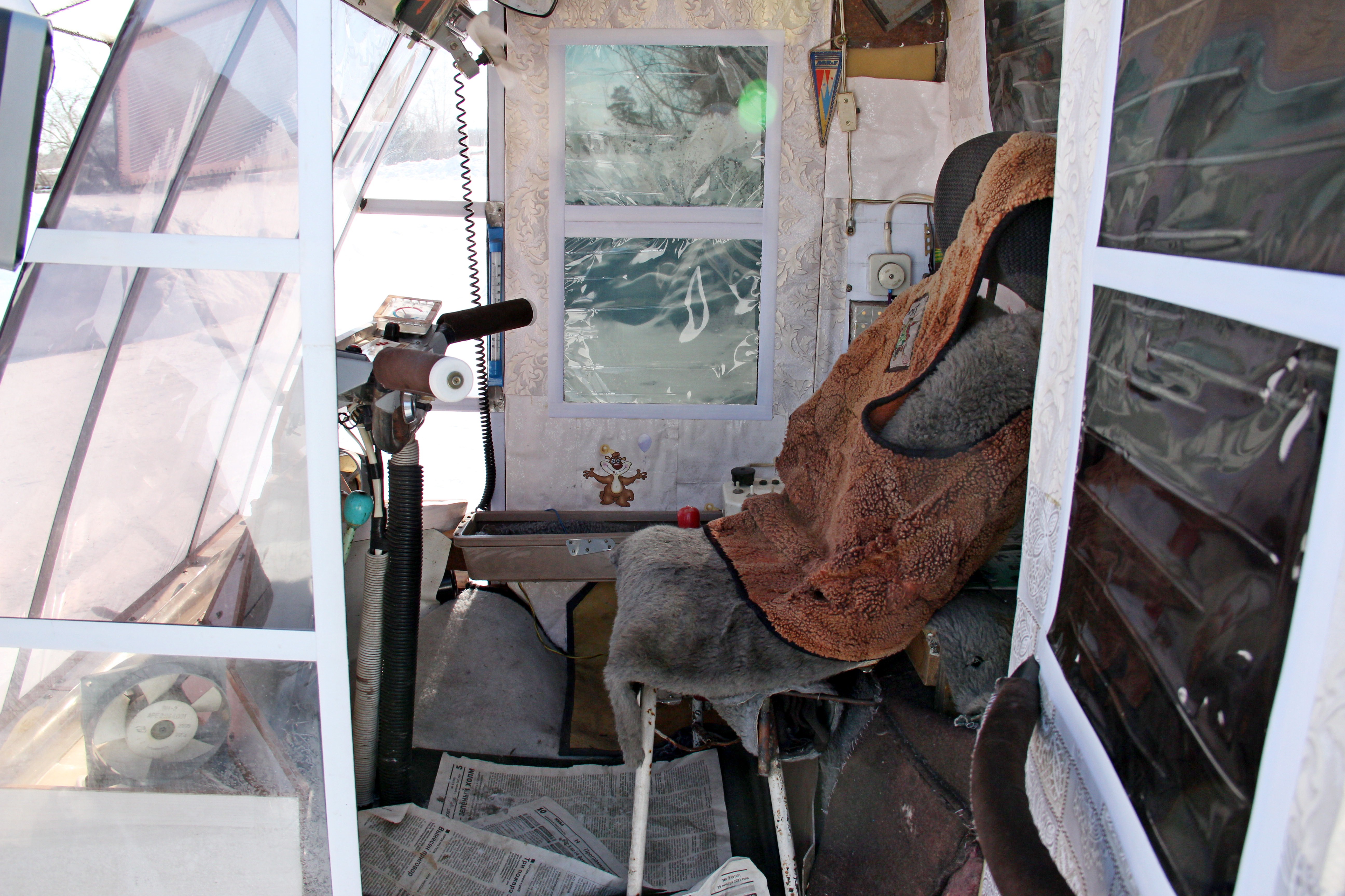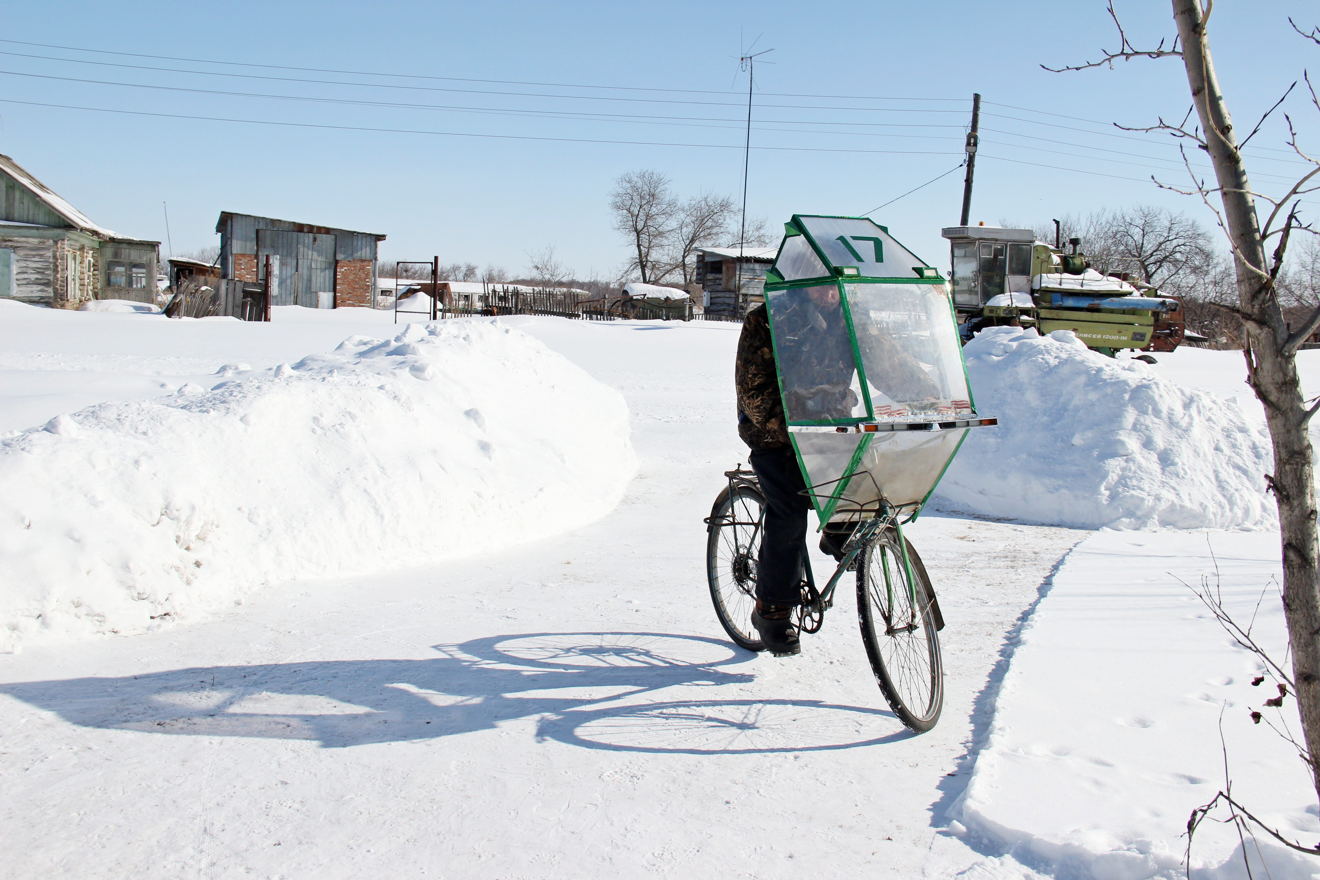 Одно из самых известных изобретений Гришаева – средство передвижения, известное среди местных как НЛО. Оно не рассчитано на холода, поэтому сейчас припарковано в сарае. Однако с наступлением теплой погоды изобретатель пользуется им практически постоянно – для поездок в Кормиловку, административный центр Кормиловского района, к которому относится Байкал.