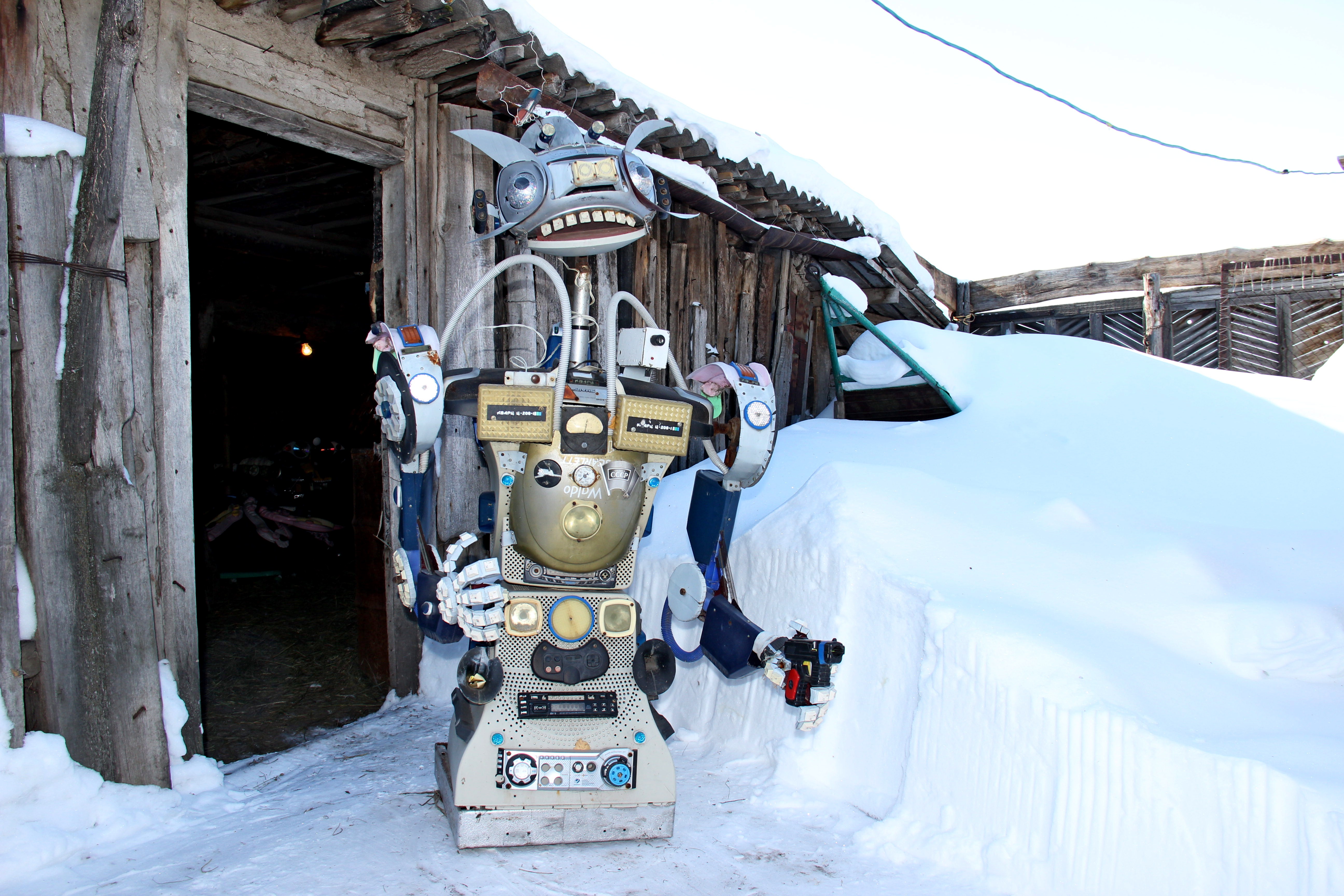 Яркий пример изобретений из того, что "под руками валяется", – роботы Гришаева. Он собрал их для выставки в честь 95-летия образования Кормиловского района, проходившей в августе 2019 года.