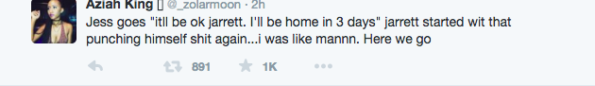 После этого Руди перевёз всю компанию в другой отель, потому что Джаррет растрепал всем в округе, что его девушка зарабатывает кучу денег — сутенёр думал, что их ограбят. Когда он уехал к невесте, Джаррет снова сорвался на Джесс и начал бить себя по лицу. В треде Зола предположила, что парень страдает от биполярного расстройства.