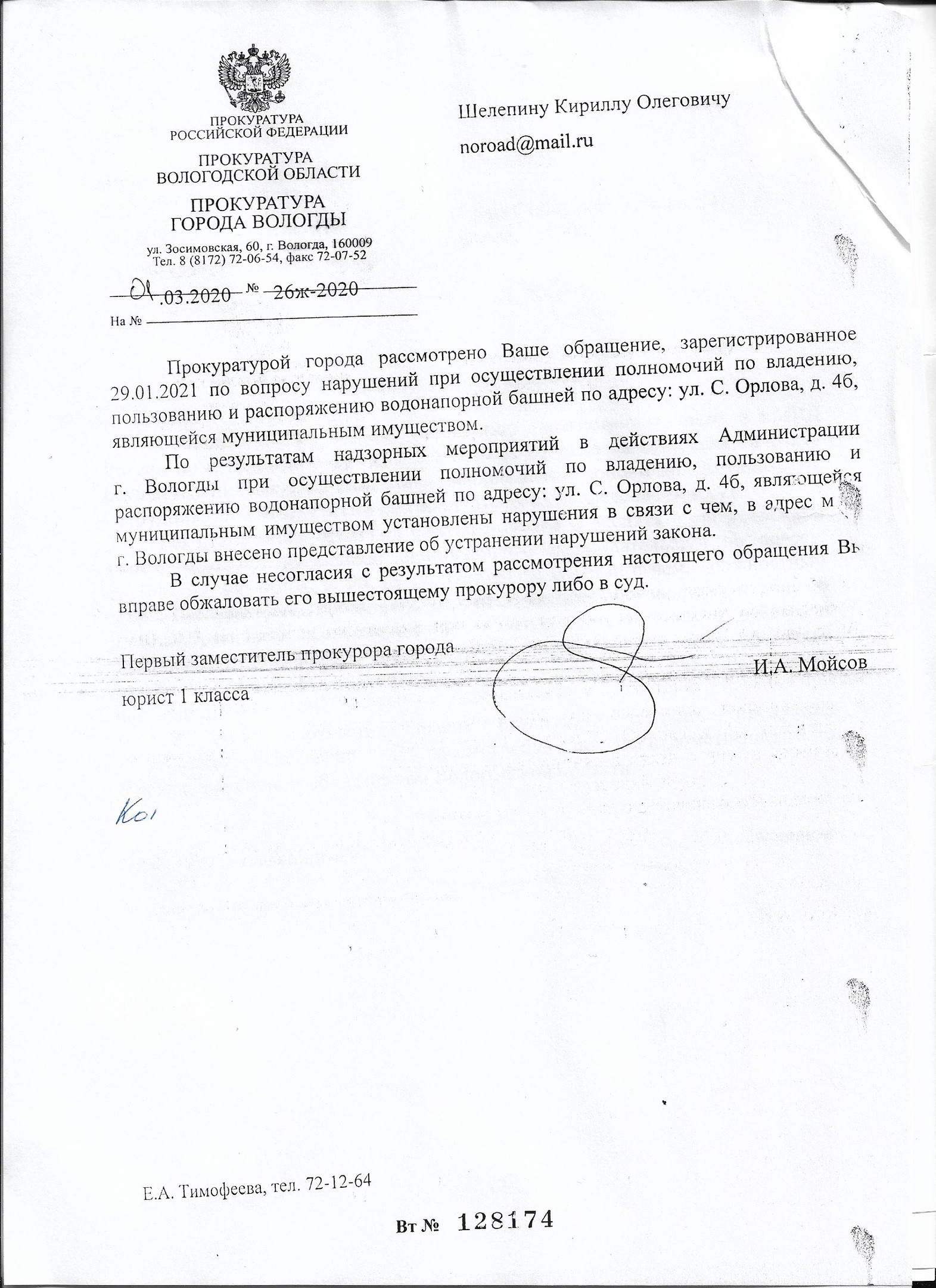 Прокуратура Нашего города рассмотрела обращение по нарушениям при осуществлении полномочий по владению муниципальным имуществом - водонапорной башней.
