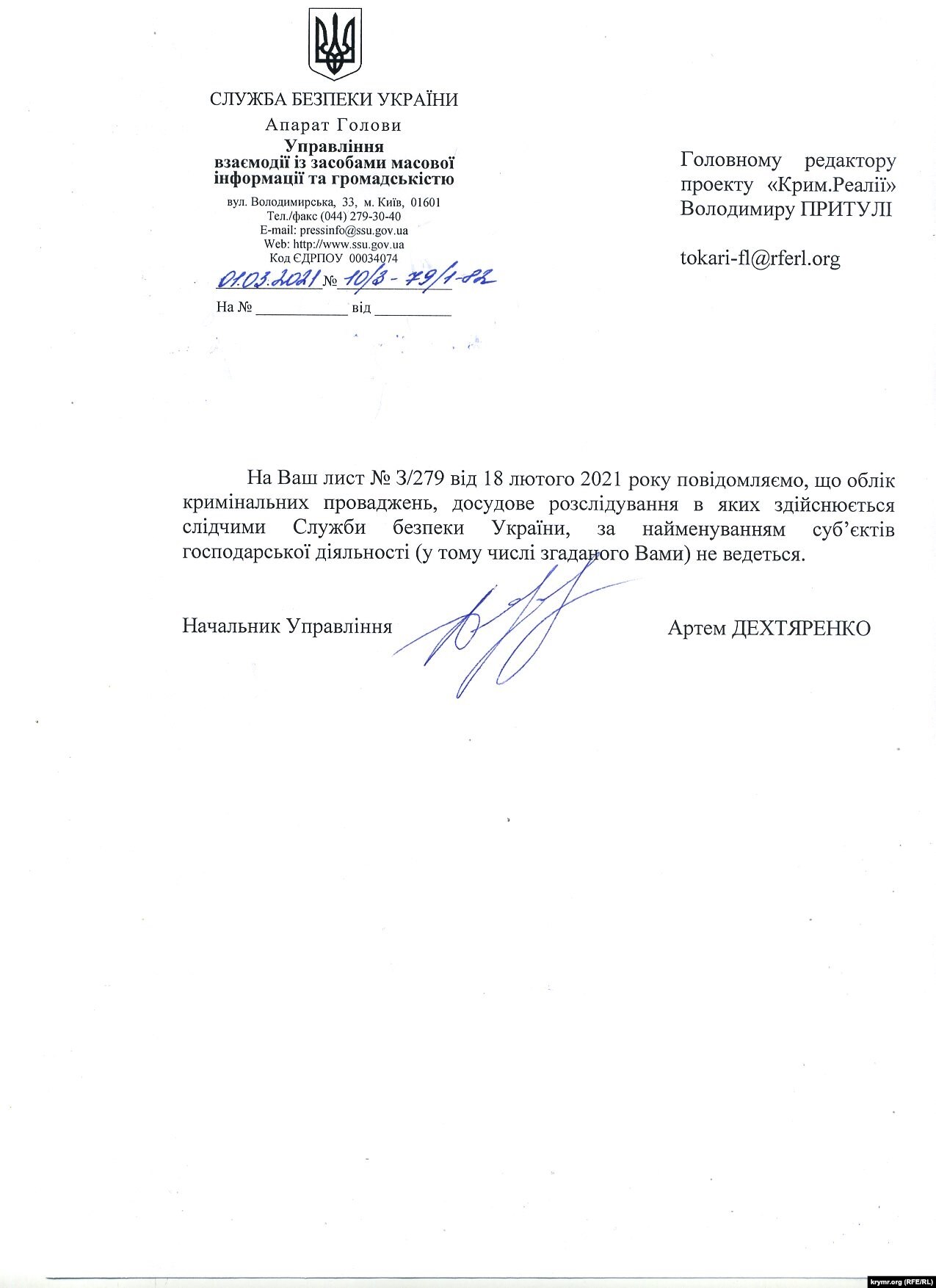 Мы спросили у представителей Прокуратуры АР Крым, не выясняли ли они источники происхождения руды, которую получает «Крымский титан». В ведомстве нам ответили, что такой информацией не владеют. А вывоз ильменита из украинских портов, по мнению прокуратуры, «формально имеет признаки законной экспортной операции». В Службе безопасности Украины нам ответили, что таких расследований сейчас не проводят.
