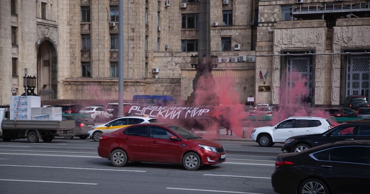 Московских нацболов задержали за акцию у МИД с дымовыми шашками