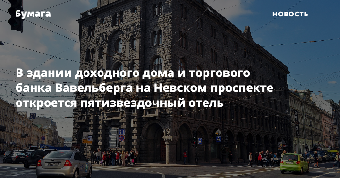 В здании доходного дома и торгового банка Вавельберга на Невском проспекте откроется пятизвездочный отель