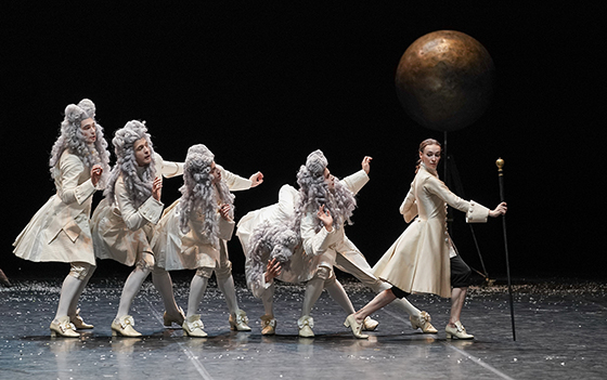 В «Орландо» хореография неинформативна и нефункциональна, не она двигает действие. Наборы glissade, renversée и port de bras сцеплены механически и аккуратно разложены на сильные доли — хореографии как искусства rubato, искусства схождения и расхождения с музыкой, здесь нет. Ритмический ландшафт не меняется. Иллюстративные эпизоды разбиты абстрактными ансамблями, которые предполагались как «лирические отступления» (программка числит почти полсотни артистов «в других партиях»), но по лексике и синтаксису не отличаются от выходов персонажей.