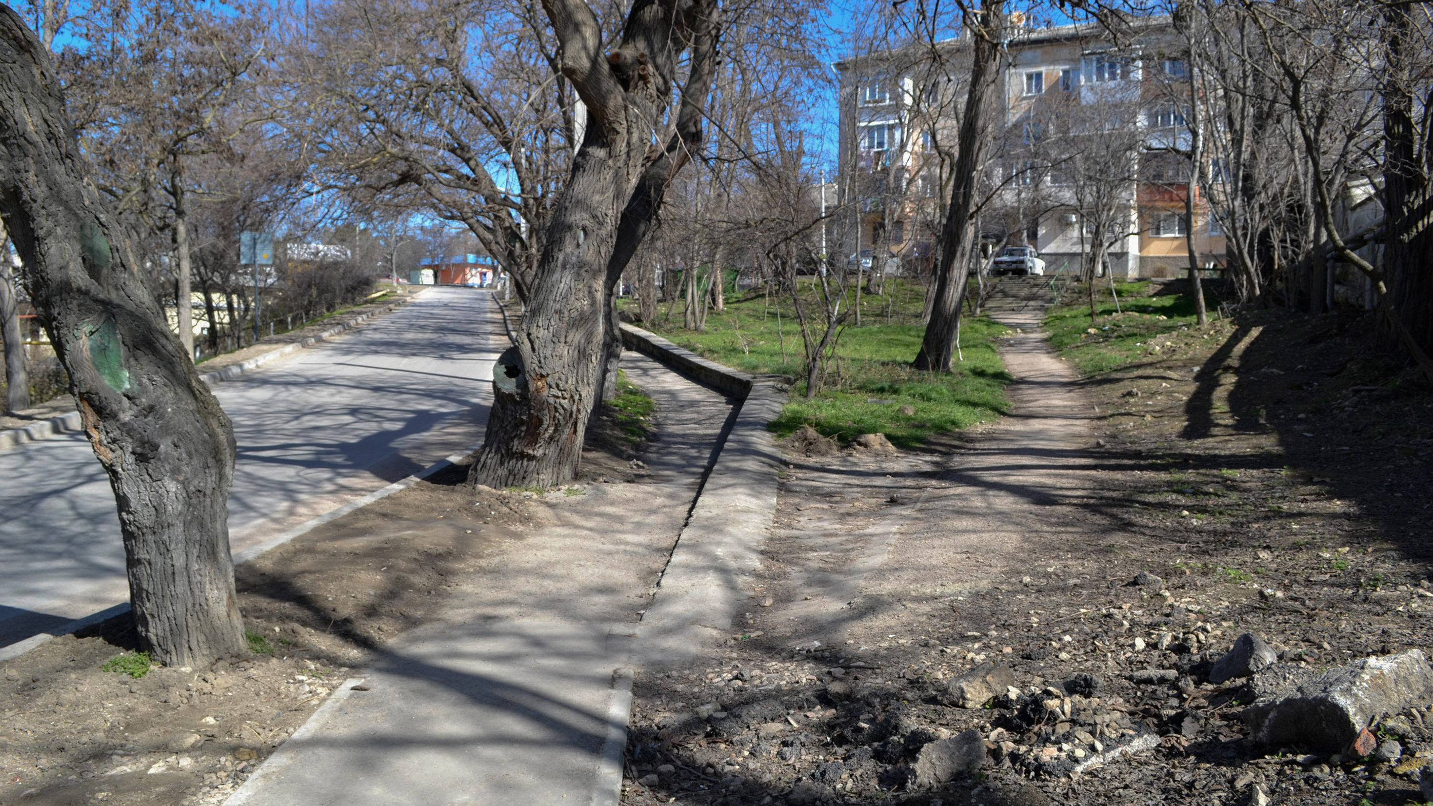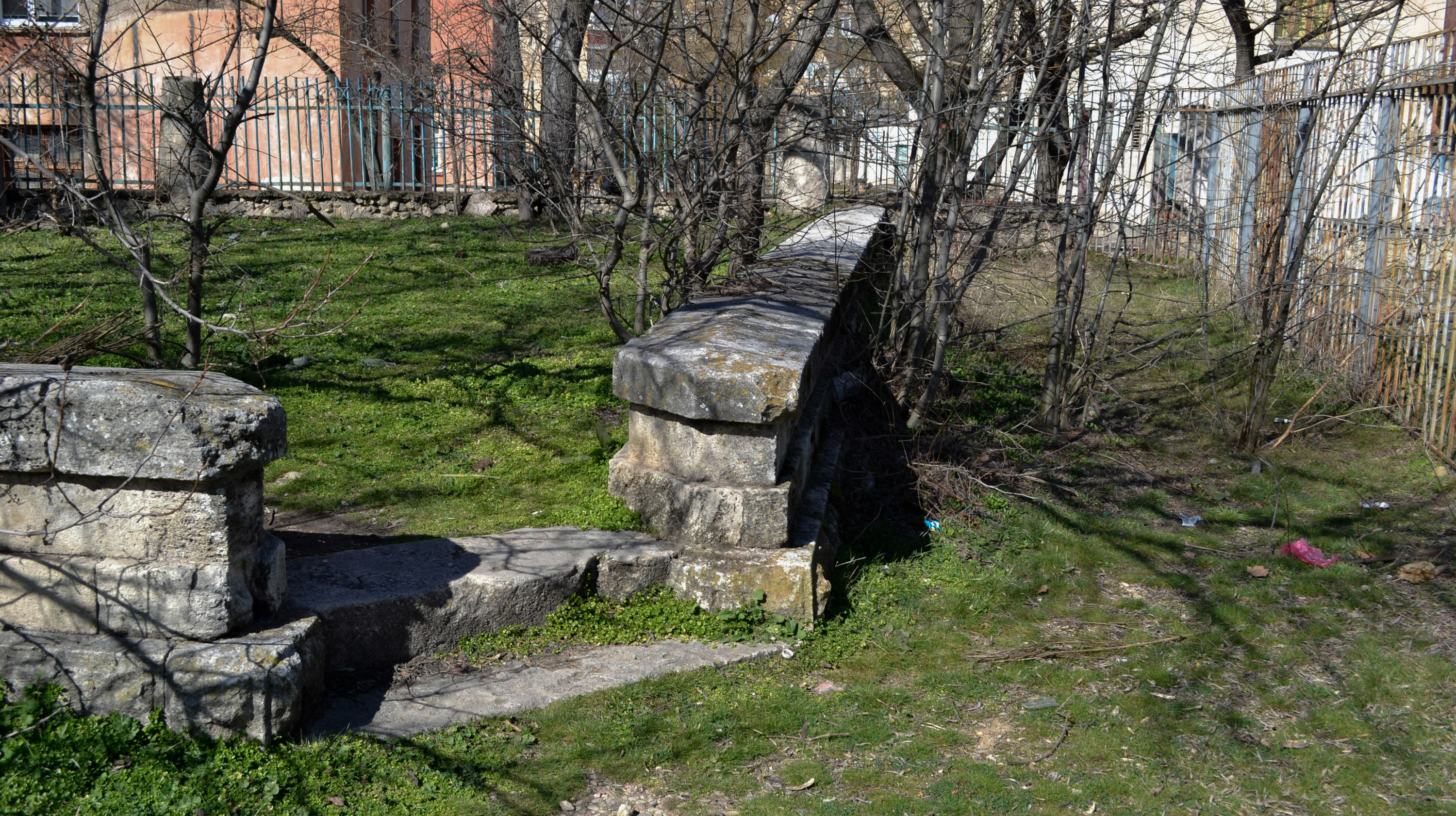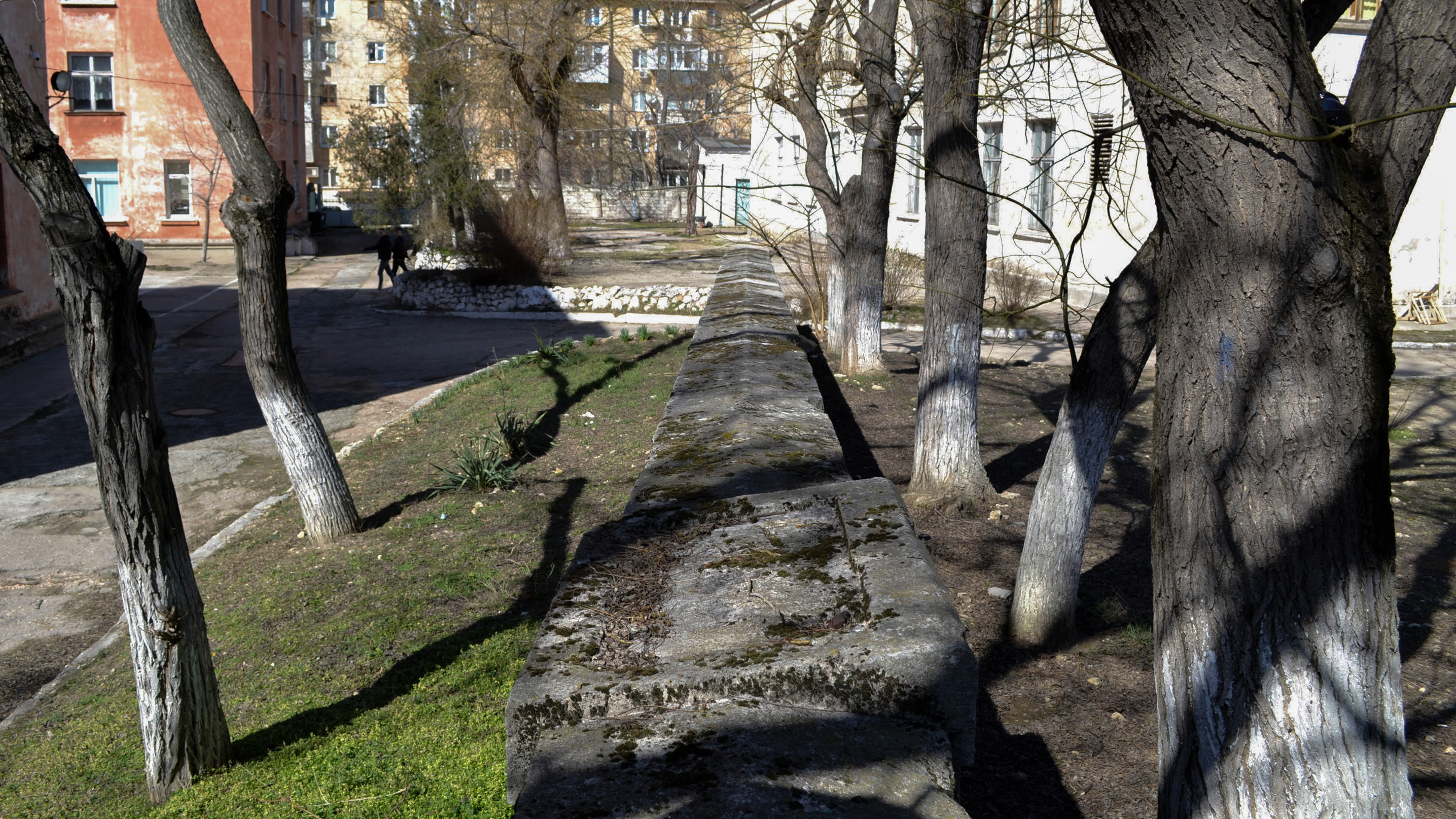 О мемориальной стенке, которую сложили из вырезанных из крымбальского известняка плит и камней вдоль бывшей оборонительной линии времен Крымской войны от Третьего бастиона до Малахова кургана, я уже рассказывал. Как оказалось, во времена СССР к памятникам предыдущей эпохи относились без особого пиетета – сносили, ровняли с землей и застраивали. На участке от Малахова кургана до Первого бастиона дело обстоит не лучше – приблизительно четверть мемориальной линии не уцелела.