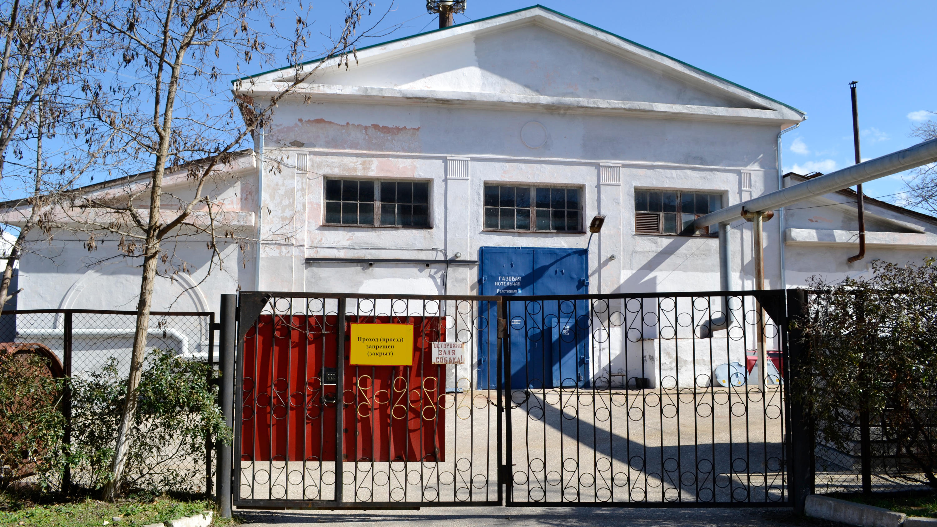 А мемориальная стенка идет вдоль гаражного кооператива и теплотрассы, пробиваясь сквозь мусор и заросли, пока не доходит до здания котельной. Его вид тоже уникален, такие формы и архитектурные элементы на технических зданиях в городе-герое больше нигде не встречаются. Работники котельной не смогли мне сказать, в каком году она была построена, однако можно предположить, что после войны. В довоенный период отопление в большинстве многоквартирных домов было печным. У въезда во двор котельной мемориальная стена также снесена.