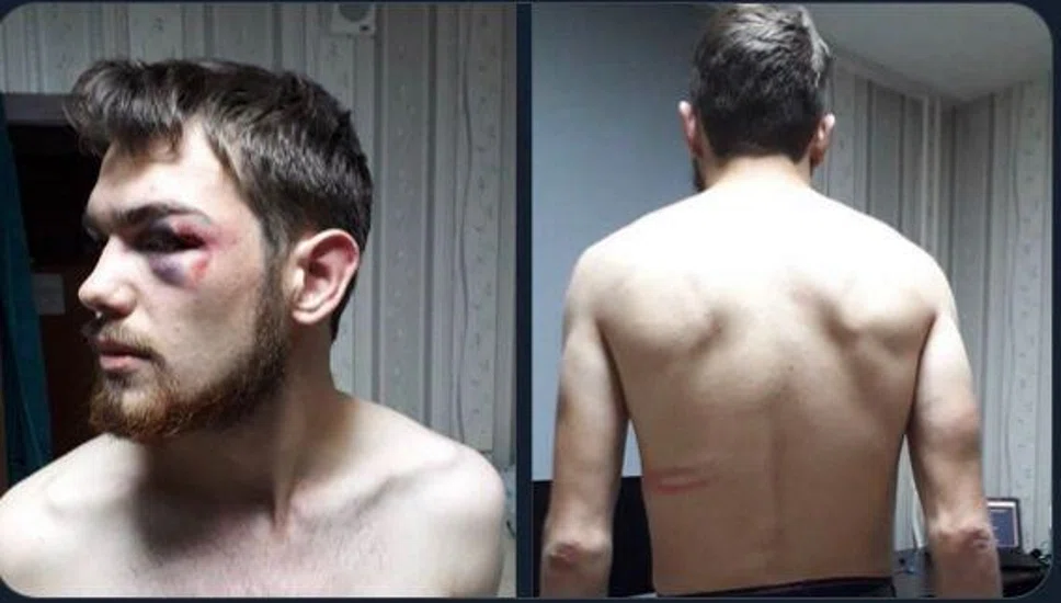 Началась экзекуция. Активистов спрашивали: «Кто главный? Где оружие? Где твой телефон?», били. Глеба стали избивать трое с дубинками: «по голове, по ногам, по рукам, по спине», на его голову, закрытую руками, и на спину встали берцами, разбили лицо. В больнице ему диагностировали «множественные ушибы тела средней тяжести».