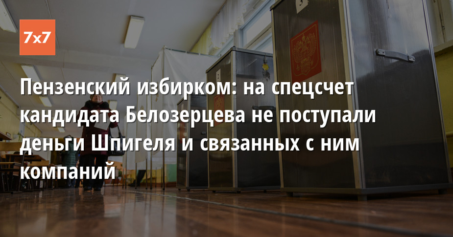 Заместитель председателя Избирательной комиссии Пензенской области Алексей Климухин сообщил корреспонденту «7х7», что кандидат в губернаторы Иван Белозерцев не отчитывался о получении 20 млн руб. от предпринимателя Бориса Шпигеля и связанных с ним компаний. Ранее адвокат экс-губернатора Белозерцева заявил в Мосгорсуде, что его подзащитный получил от Шпигеля деньги на проведение избирательной кампании.