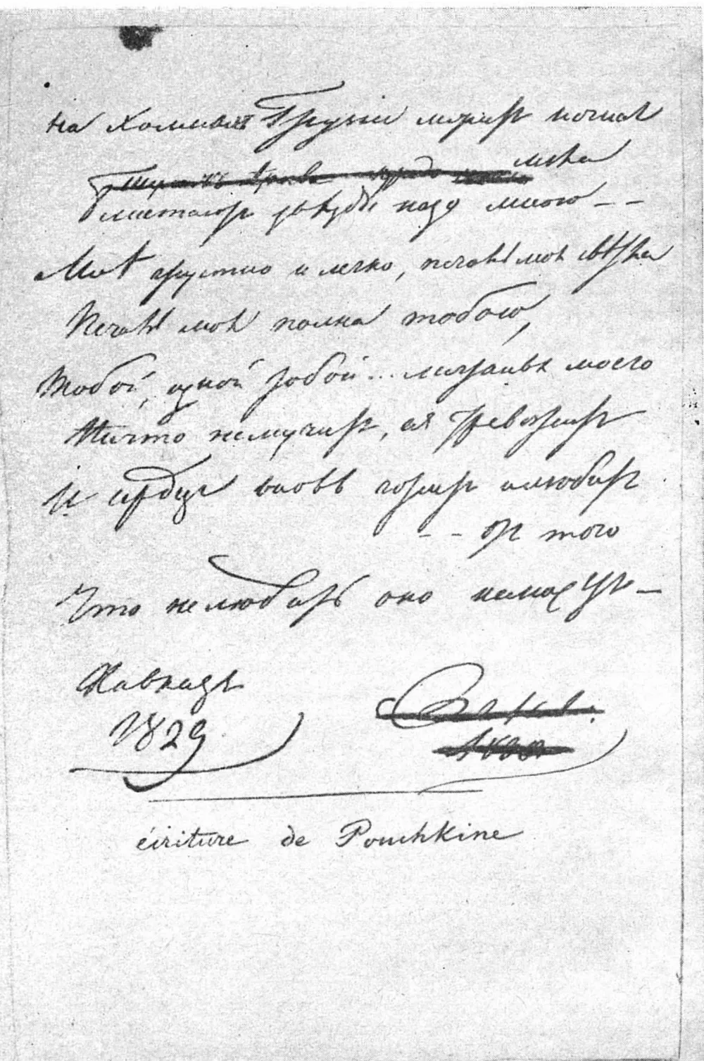 Вот, например, черновик первой редакции стихотворения Пушкина «На холмах Грузии лежит ночная мгла…» в так называемой Первой арзрумской тетради (мы можем теперь знакомиться с ней по упоминавшемуся факсимильному изданию). Текст датирован 15 мая (1829 года):