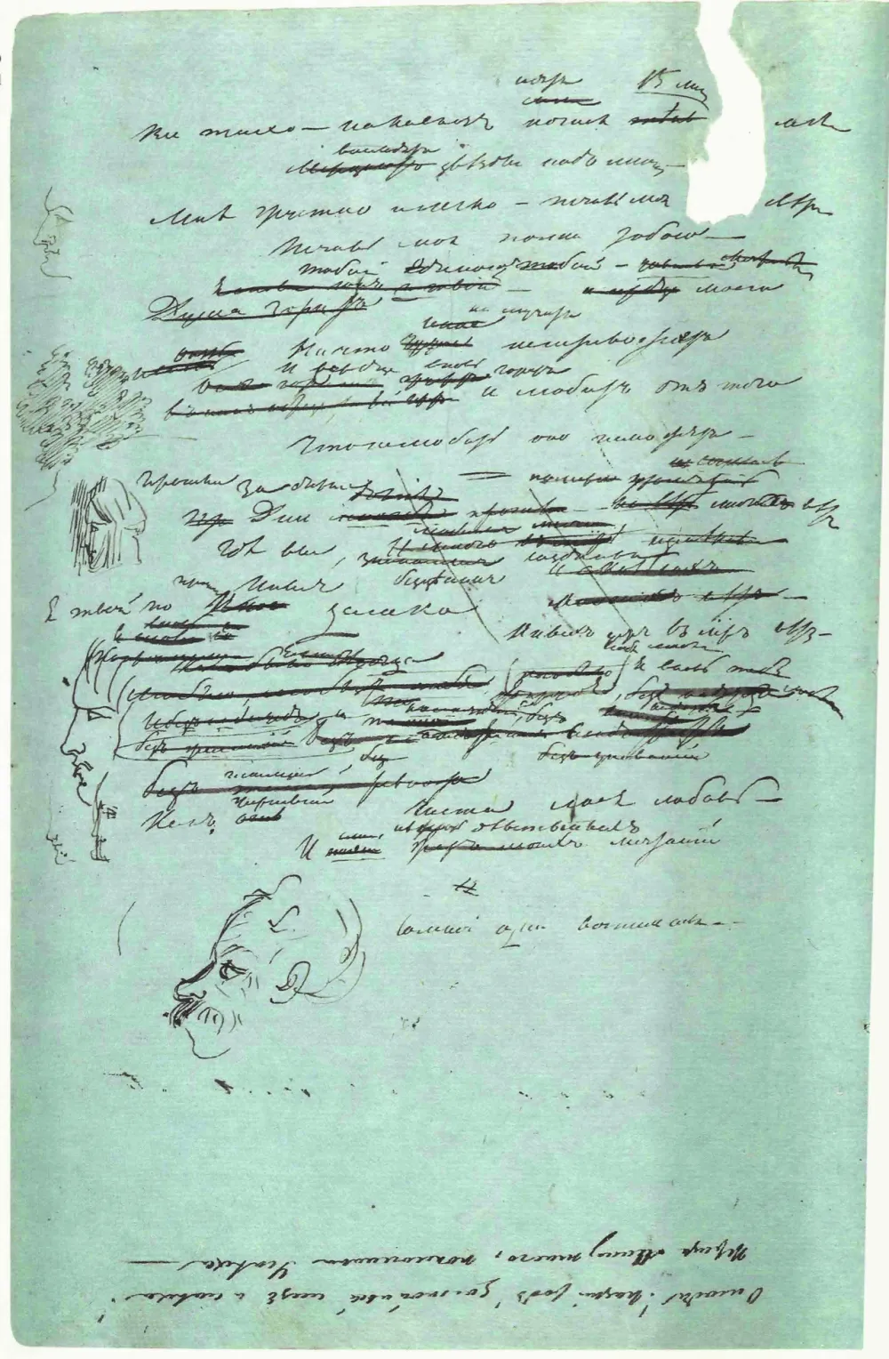 Затем на обороте этого же листа Пушкин попробовал продолжить стихотворение, однако отбросил продолжение, даже не завершив его:
