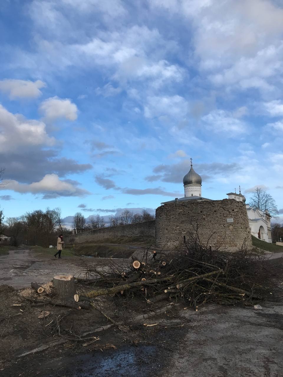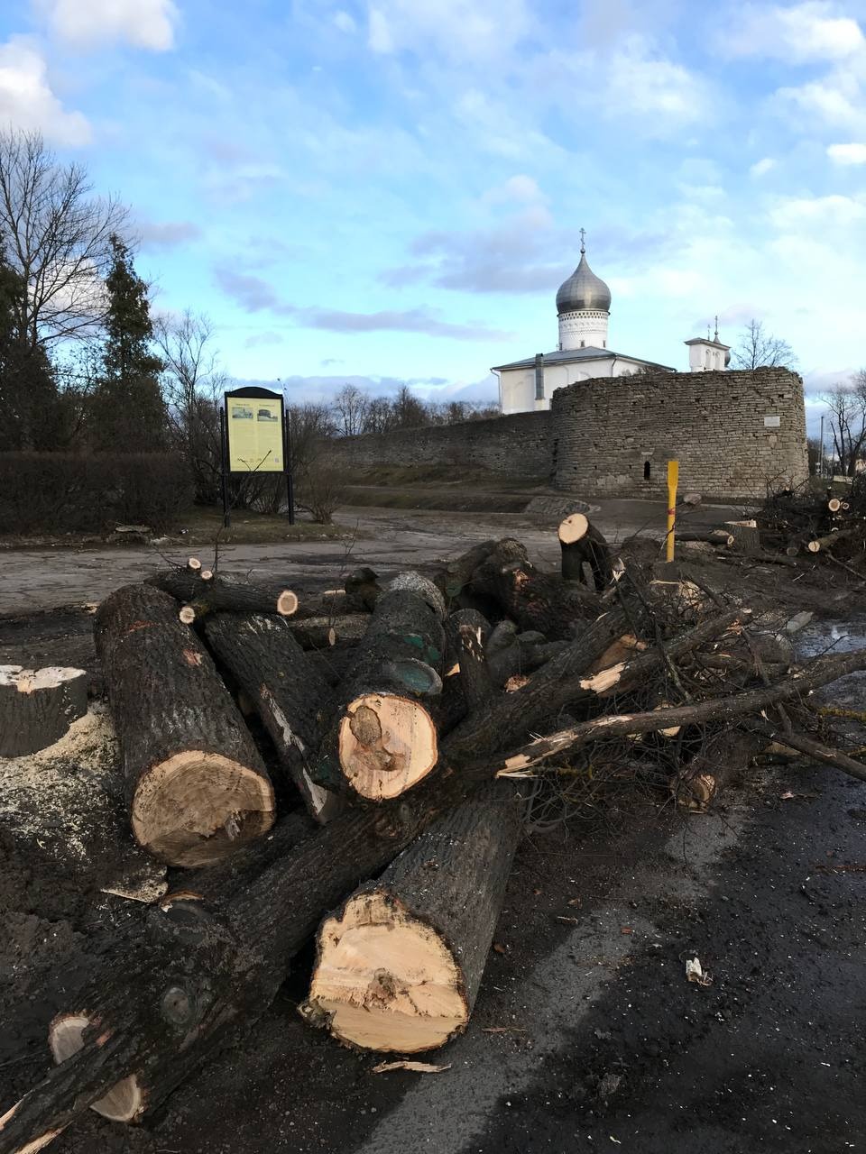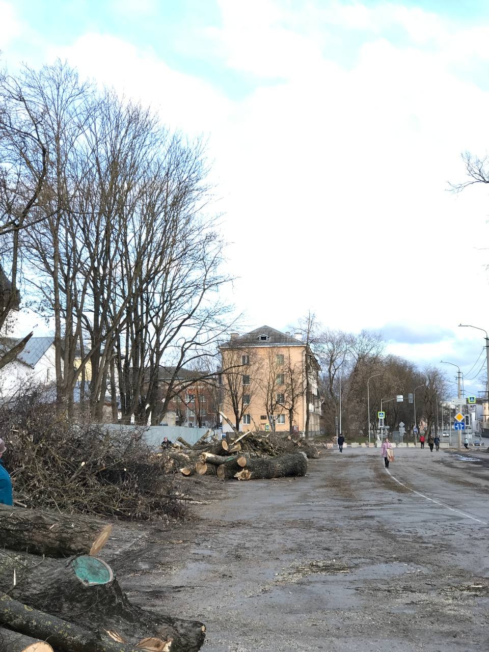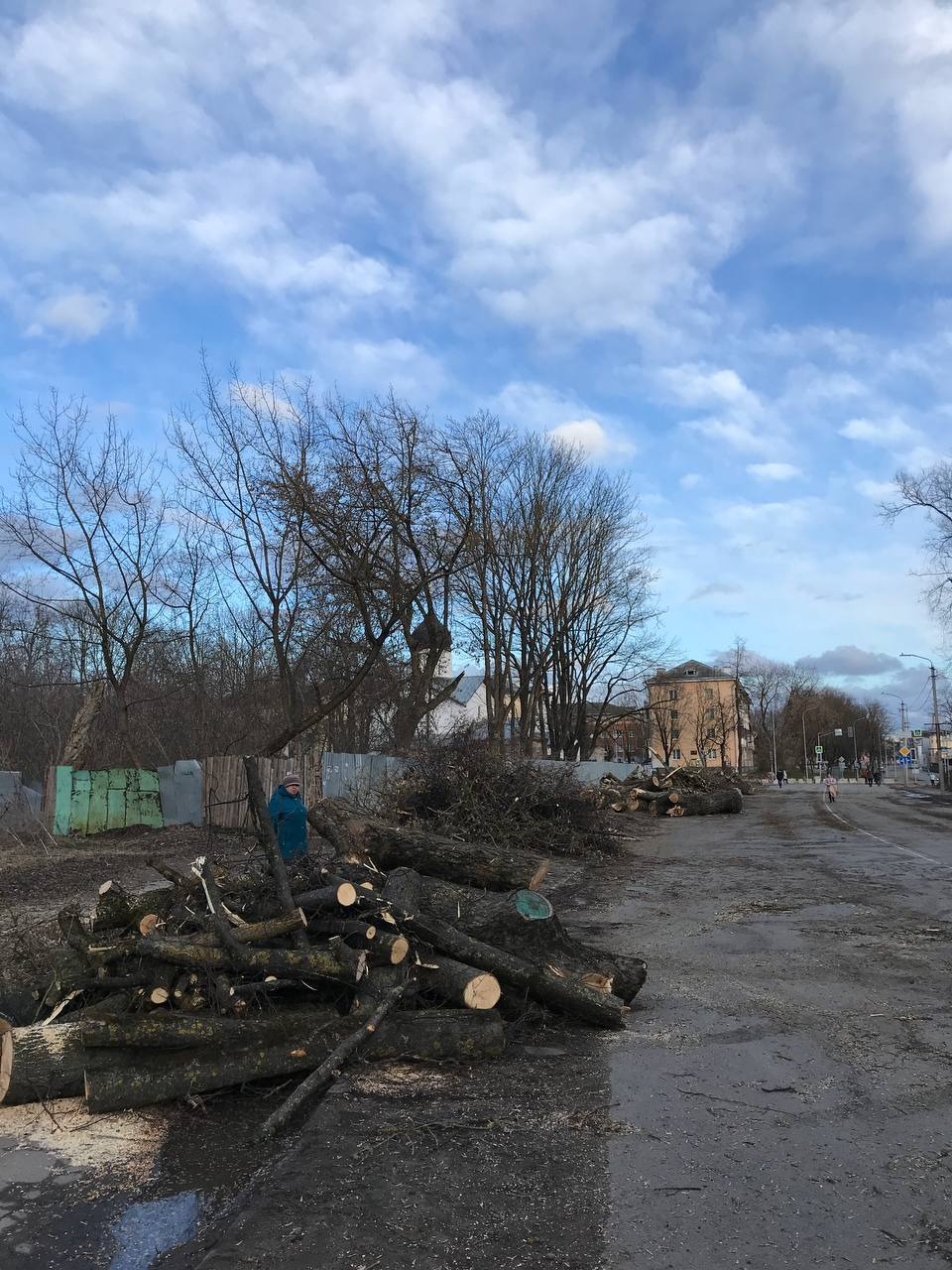 Вдоль улицы Леона Поземского в Пскове вырубают деревья