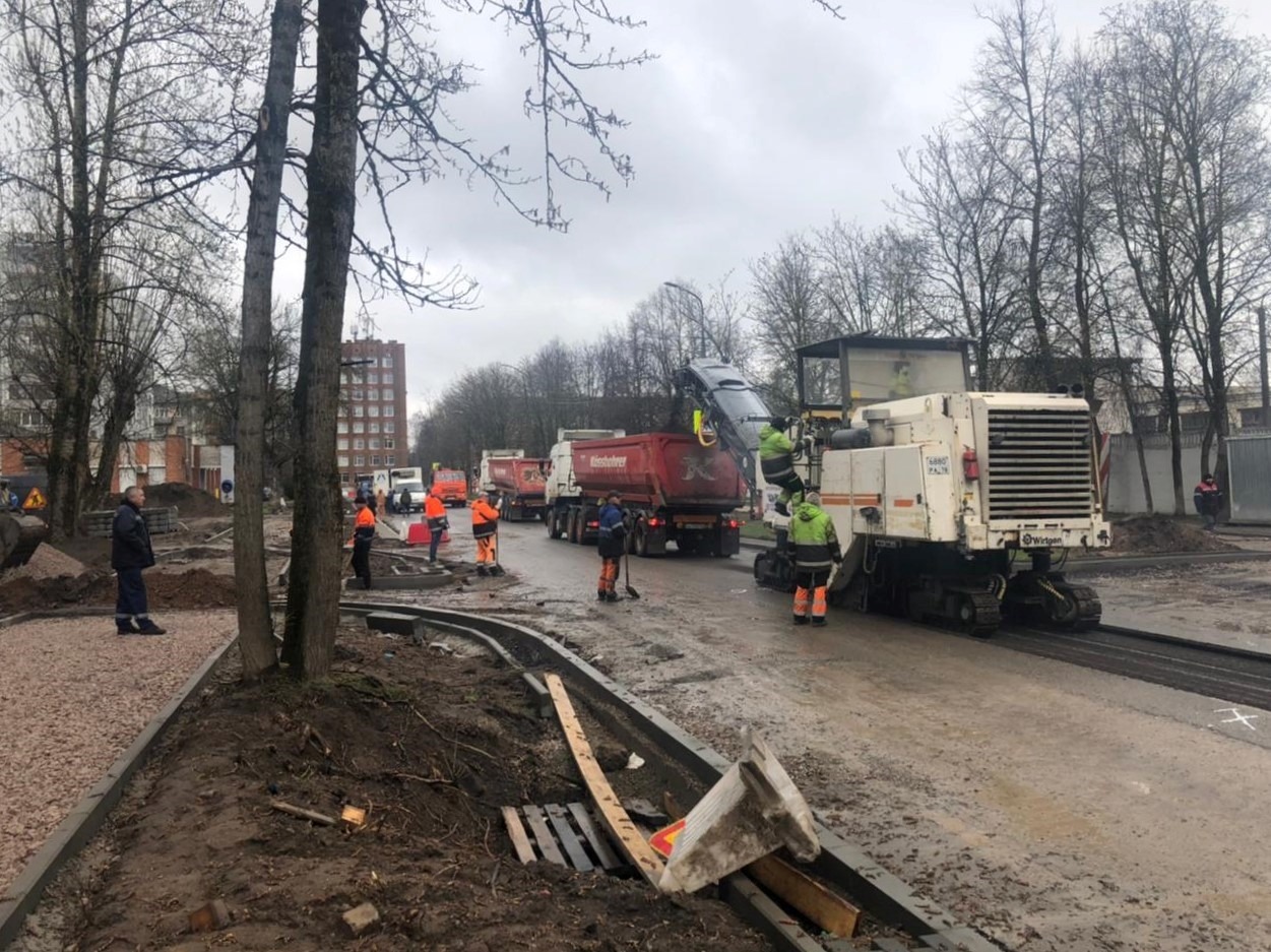 Вдоль улицы Леона Поземского в Пскове, на ремонтируемом участке от улицы Набат до Ипподромной, вырубают деревья.