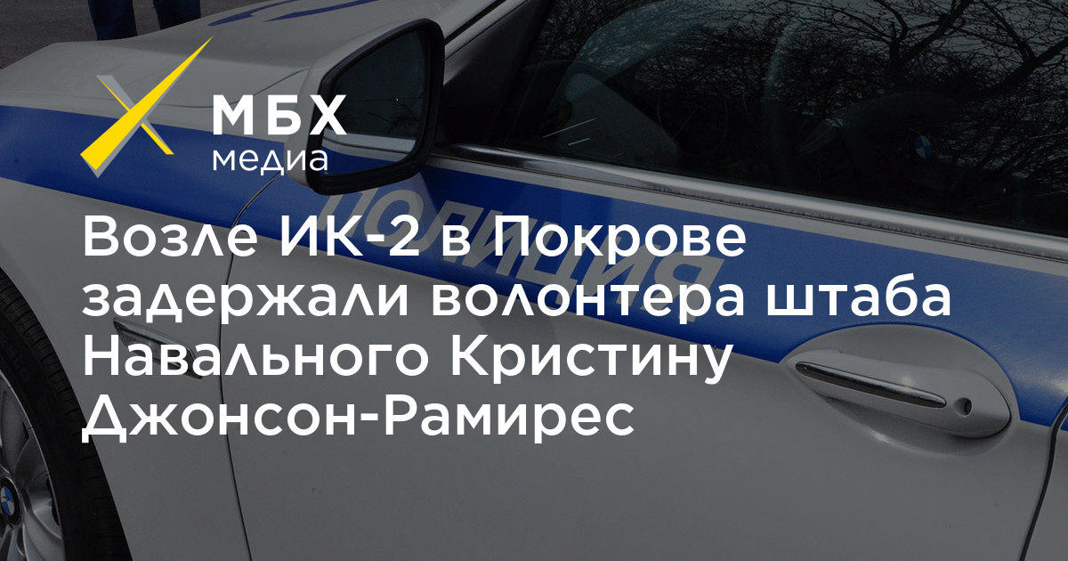 Возле исправительной колонии № 2 в Покрове задержали волонтера штаба Алексея Навального Кристину Джонсон-Рамирес, ей вменяют ч. 3 ст. 20.2.2 КоАП (организацию массового пребывания граждан, повлекшего нарушение общественного порядка, на территории, прилегающей к колонии). Об этом «МБХ медиа» сообщила координатор штаба Навального в Санкт-Петербурге Ирина Фатьянова.