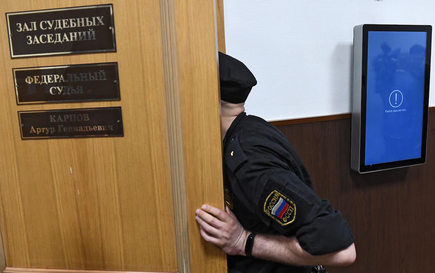 Дверь в зал судебных заседаний Артура Карпова. Фото: Дмитрий Духанин / Коммерсант
