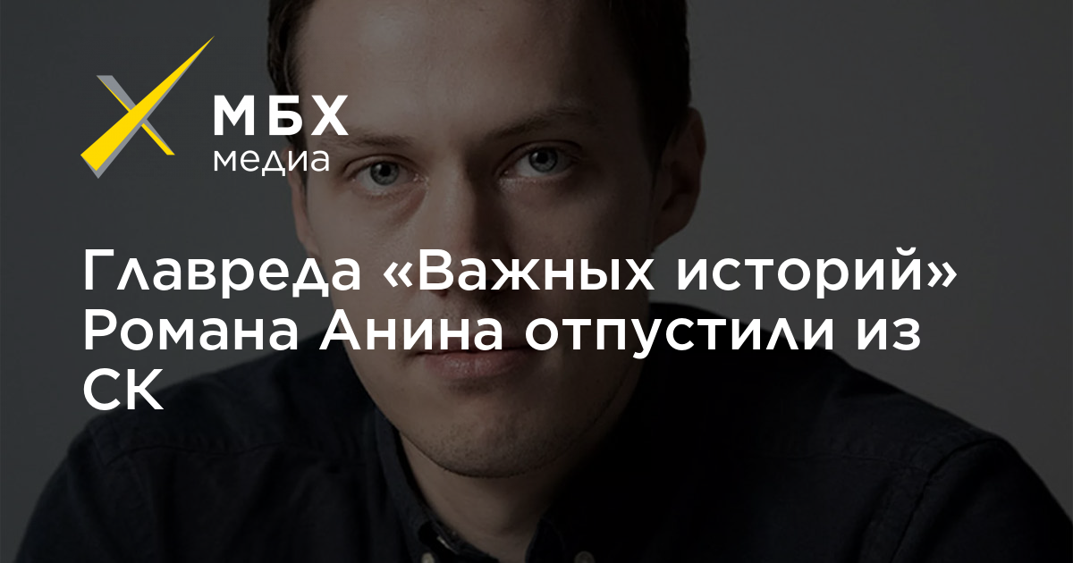 Главного редактора «Важных историй» Романа Анина отпустили из Следственного комитета после допроса, сообщает издание со ссылкой на адвоката Анну Ставицкую.
