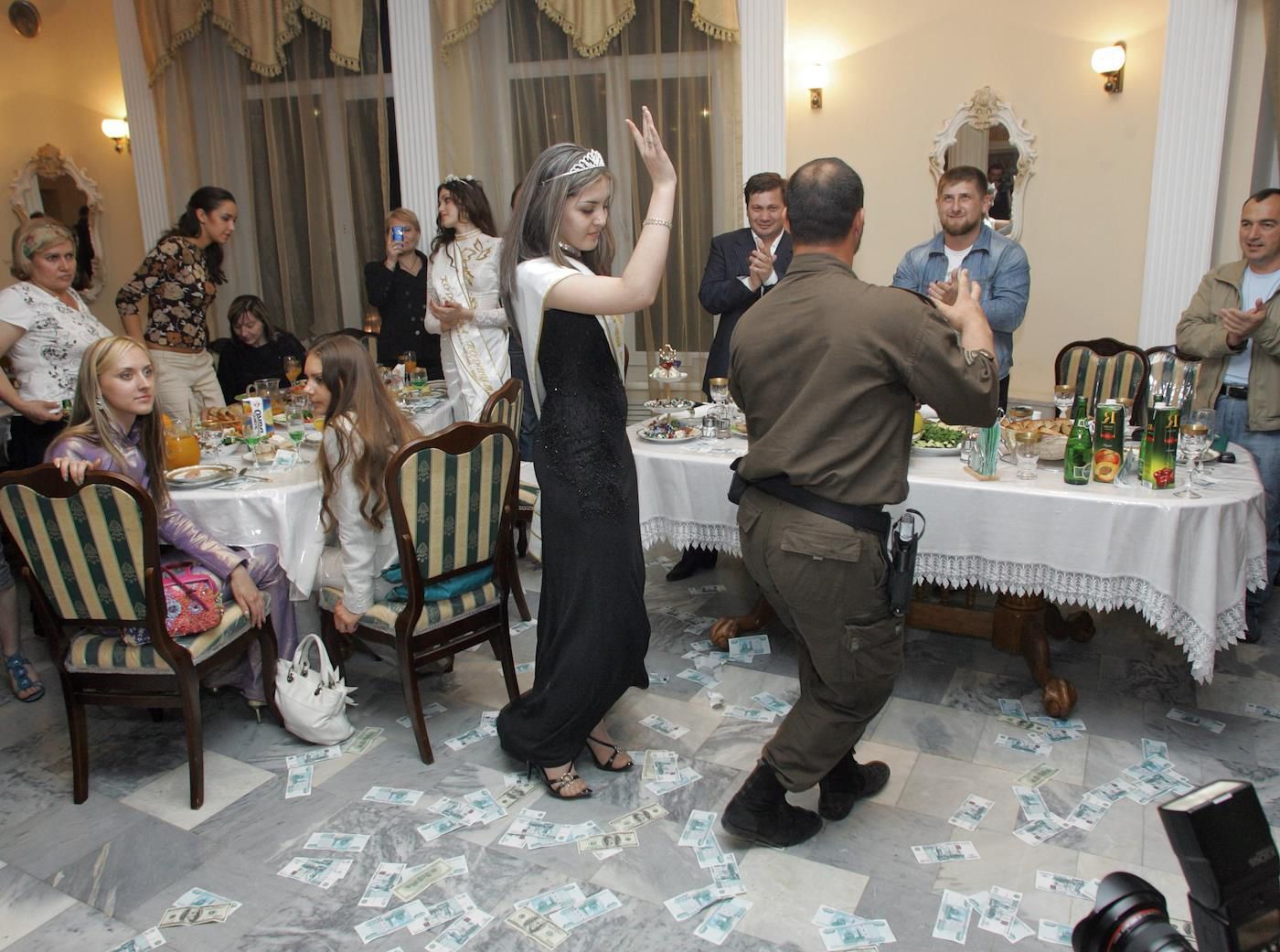 После конкурса участницы отправились на банкет в компании главы республики и его охраны. Одна из девушек, не прошедшая в финал, заплакала, и по велению Кадырова ей тут же преподнесли золотые часы Chopard с с бриллиантами, писала газета «Коммерсантъ». За ужином девушки вышли танцевать лезгинку с охранниками, и тогда в воздух полетели деньги: сначала рублевые, а потом долларовые банкноты. Знаменитые кадры Кадырова и вихря из купюр были сняты именно там. Присутствовавшая там журналистка «Коммерсанта» насчитала на полу никак не меньше 30 тысяч долларов.