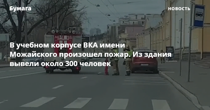 Произошел пожар в учебном корпусе Военно-космической академии имени Можайского на улице Красного Курсанта. Об этом сообщают ТАСС и «РИА Новости» со ссылкой на источники в экстренных службах.
