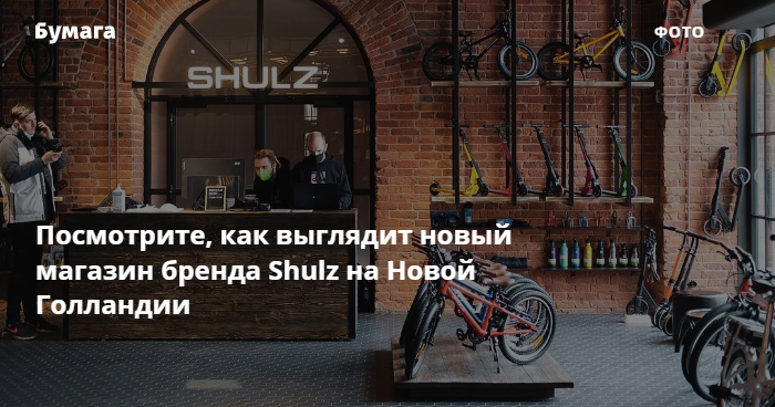 «Это небольшой шоурум петербургского бренда в петербургском месте», — описал точку в разговоре с «Бумагой» основатель Shulz Александр Иванов. Площадь магазина на Новой Голландии — 30 квадратных метров, там можно выбрать самокаты и велосипеды, а также оформить самовывоз.