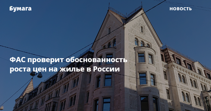 Федеральная антимонопольная служба по поручению Владимира Путина проверит, насколько обоснован рост цен на жилье в России. Об этом сообщает ТАСС со ссылкой на ведомство.