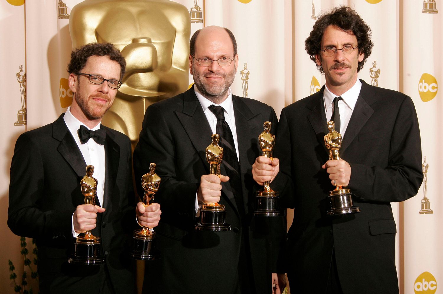 Francis Specker / Alamy / Vida Press Этан Коэн, Скотт Рудин и Джоэл Коэн со своими «Оскарами» за фильм «Старикам здесь не место» на 80-й церемонии вручения премии . Лос-Анжелес, 2007 год