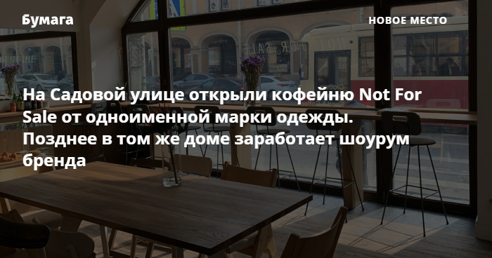 На Садовой улице открыли кофейню Not For Sale от одноименной марки одежды
