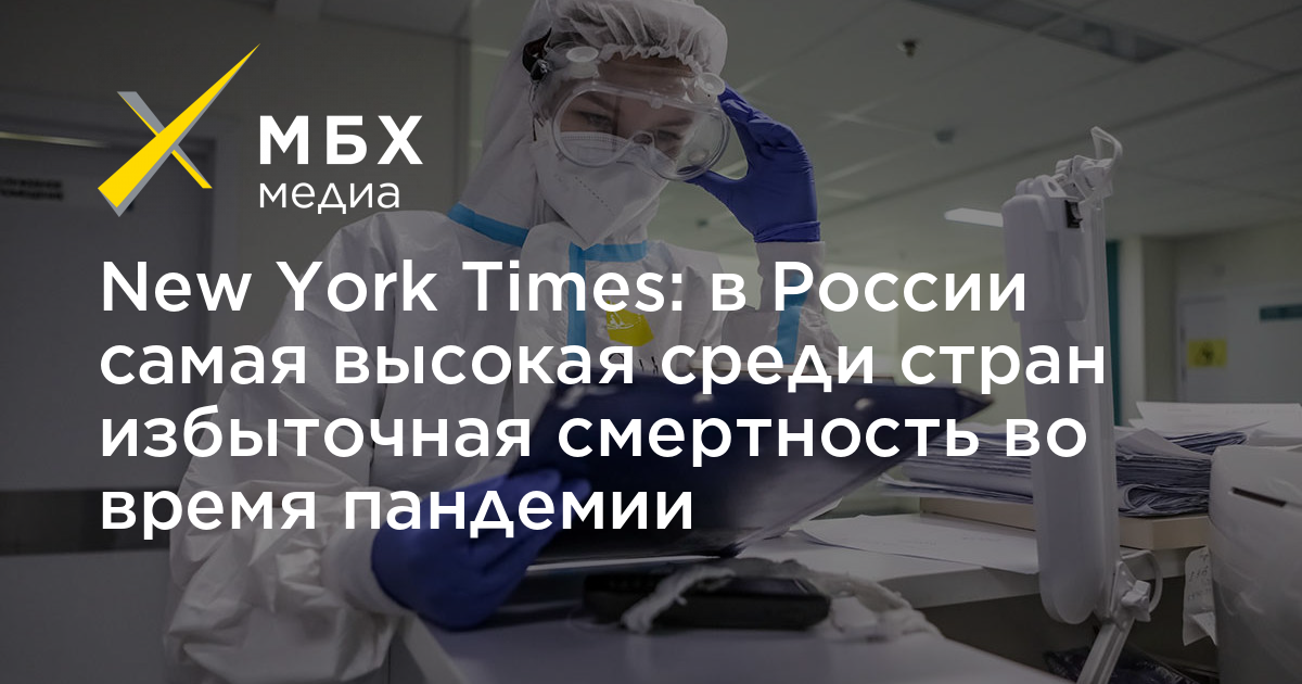 При этом в реальном выражении лидером по избыточной смертности за прошлый год стали США. Там умерли на 385,1 тысячи человек больше среднего показателя. Если учитывать данные Росстата за январь и февраль 2021 года, то показатель избыточной смертности за время пандемии превысит 400 тысяч, отмечает NYT. При этом в США, где население более чем вдвое превышает население России, избыточная смерть за тот же период — около 574 тысячи человек. Учитывая демографические показатели, «пандемия убила примерно одного из 400 человек в России по сравнению с одним из 600 человек в Соединенных Штатах», сказано в материале.