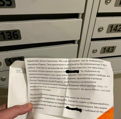 Журналисту «Радио Свобода» подбросили письмо с угрозами: его работу назвали «предательством родины»