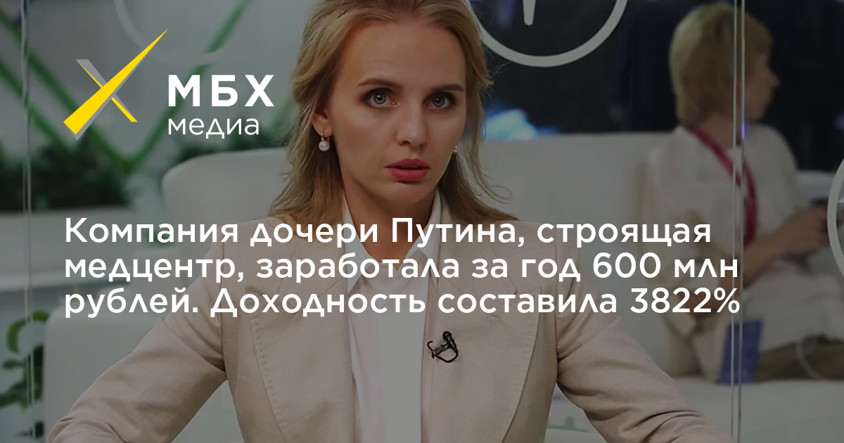 Компания дочери Путина, строящая медцентр, заработала за год 600 млн рублей. Доходность составила 3822%