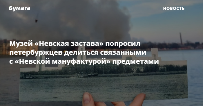 Историко-краеведческий музей «Невская застава» обратился к жителям Невского района с просьбой поделиться воспоминаниями и артефактами, связанными со сгоревшим зданием «Невской мануфактуры».