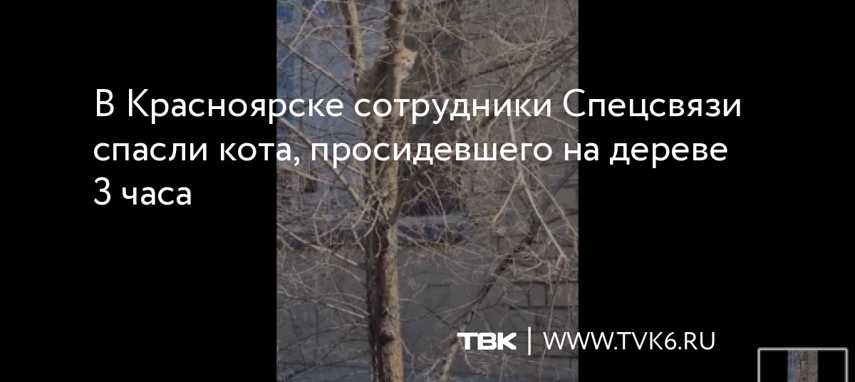 В Красноярске сотрудники Спецсвязи спасли кота, просидевшего на дереве 3 часа