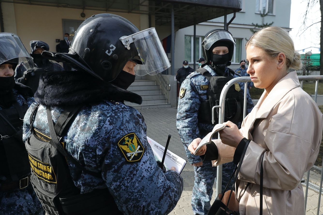 — Но приставы тут стоят! Может, они присядут?, — возражает оппозиционерка, указывая на нависших над ней сотрудников в бронежилетах.