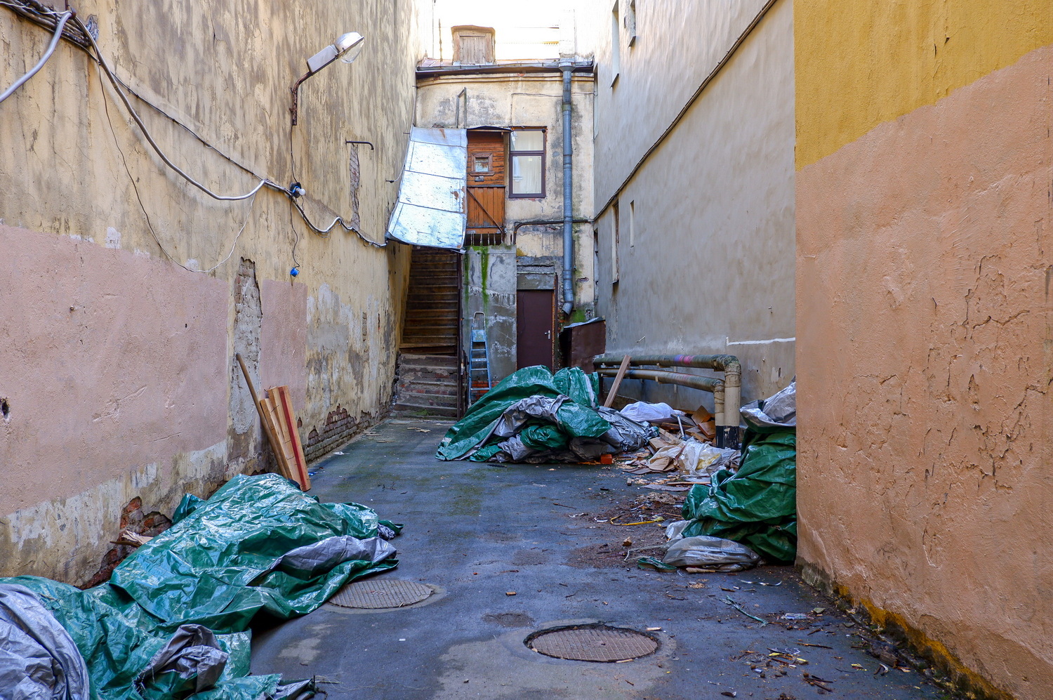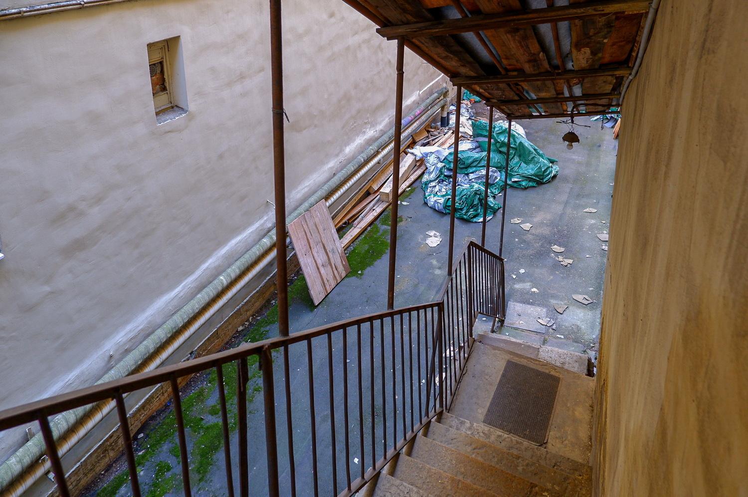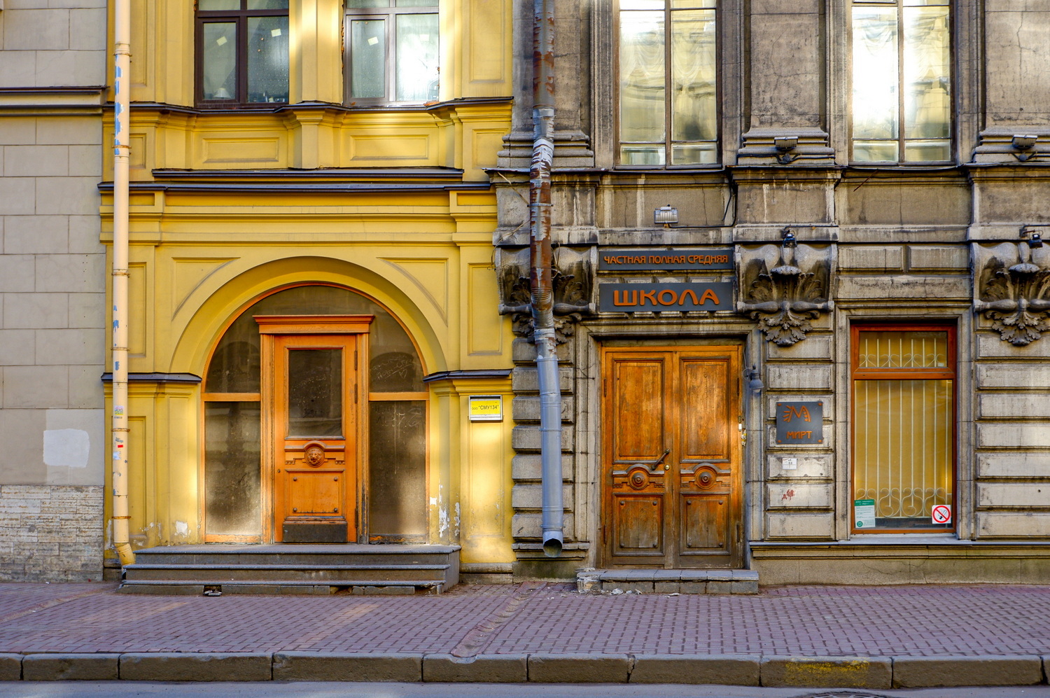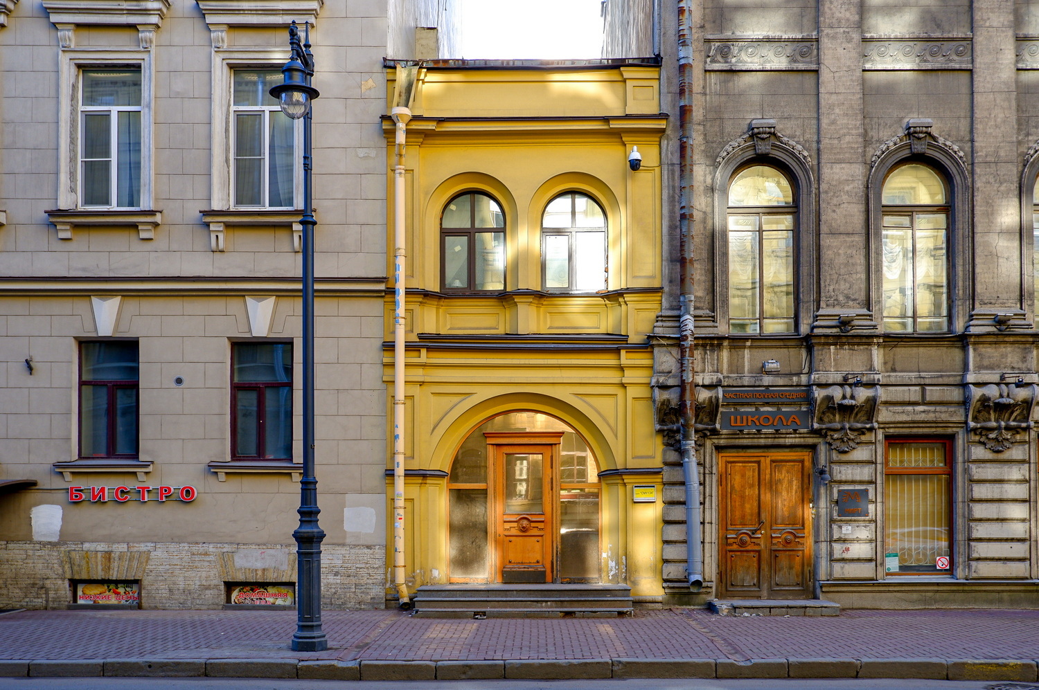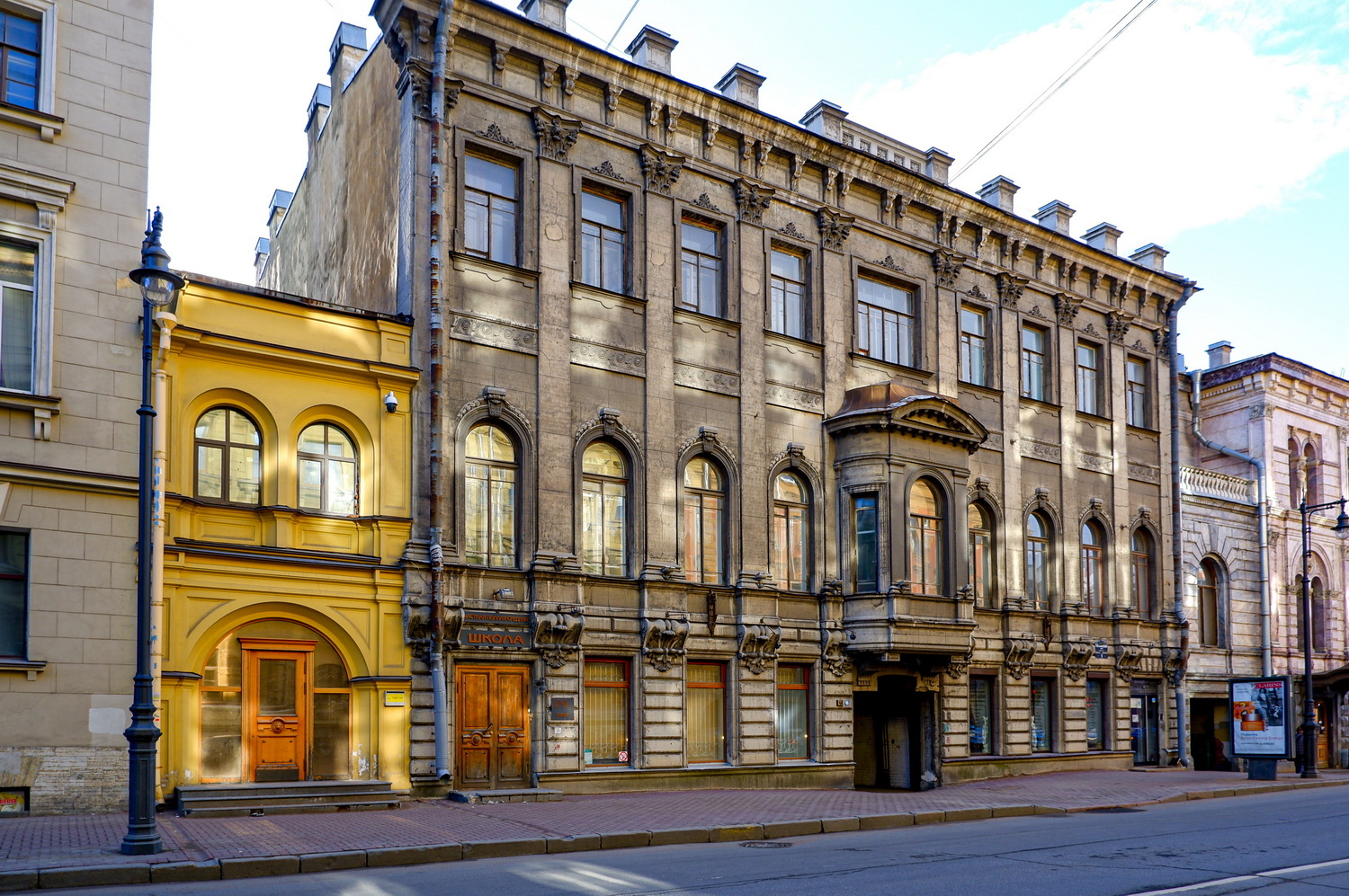 Сперва я подумал, что это строение — боковой флигель одного из соседних домов покрупнее. Слева от него расположился Дом для придворных служителей — здание на Гагаринской, 7 было построено в начале XIX века как «общежитие коридорного типа» для тех, кто обслуживал многочисленные царские и великокняжеские дворцы Петербурга. В 1930-х годах его отдали под жилищно-строительное кооперативное товарищество Ленжилстройсоюза «Соцстрой». Члены кооператива пристроили к старинному зданию три дополнительных этажа, из-за чего он даже чуть просел, но выстоял. Сегодня это вполне обыкновенный жилой дом с необыкновенно широкими коридорами на каждом этаже. Когда-то в них даже помещались общие кухни!