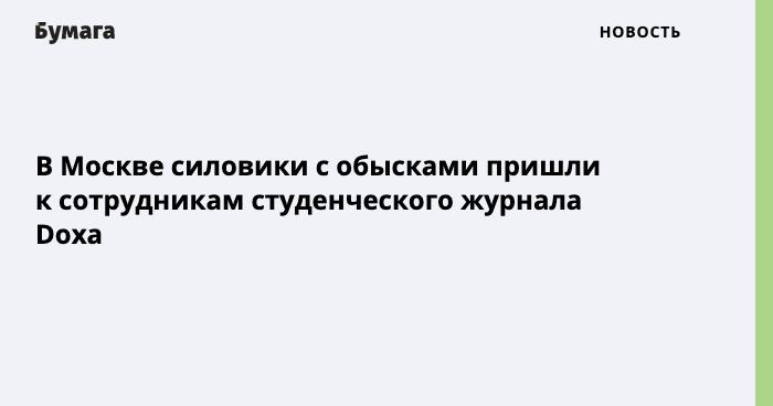 В Москве силовики с обысками пришли к сотрудникам студенческого журнала DOXA