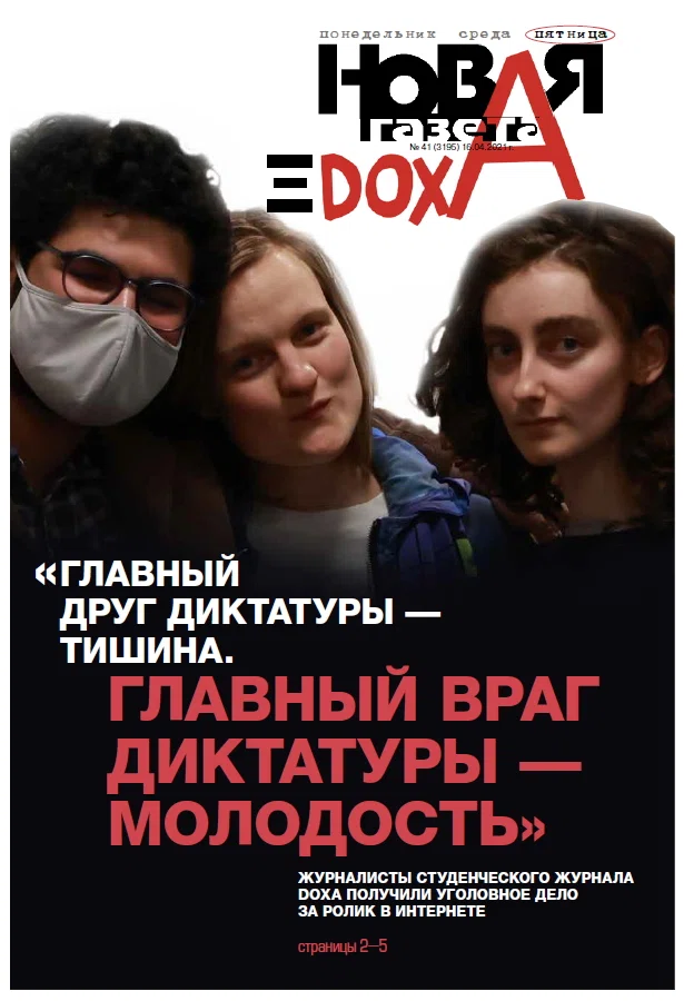 Дата15.04.2021Автор«Новая газета»ИсточникНовая ГазетаСохранённая копияInternet ArchiveOriginal MaterialShow translation«Новая газета» вместе с DOXAСолидарность на обложке свежего номера Обложка завтрашнего номера «Новой газеты» выглядит так