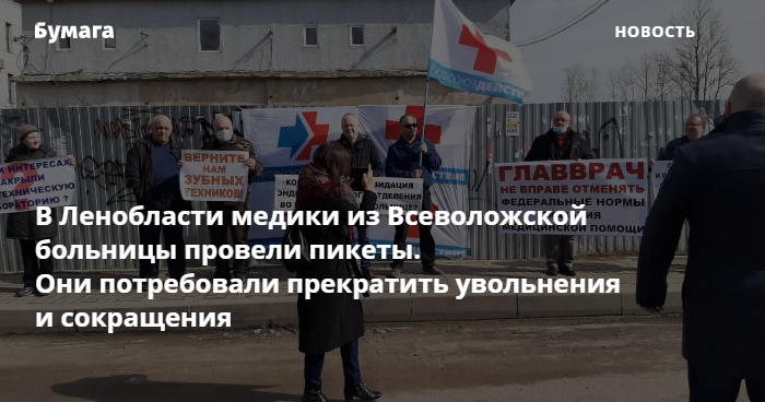 Во Всеволожске Ленинградской области бывшие и действующие сотрудники Всеволожской клинической межрайонной больницы провели пикеты из-за политики нового главного врача. Внимание на это обратила «Новая газета».