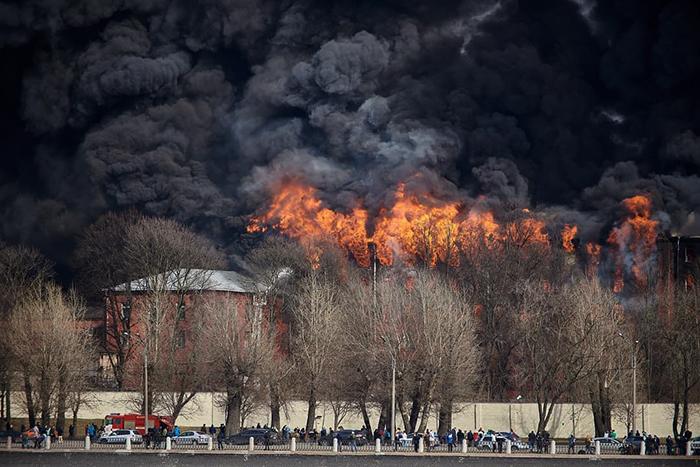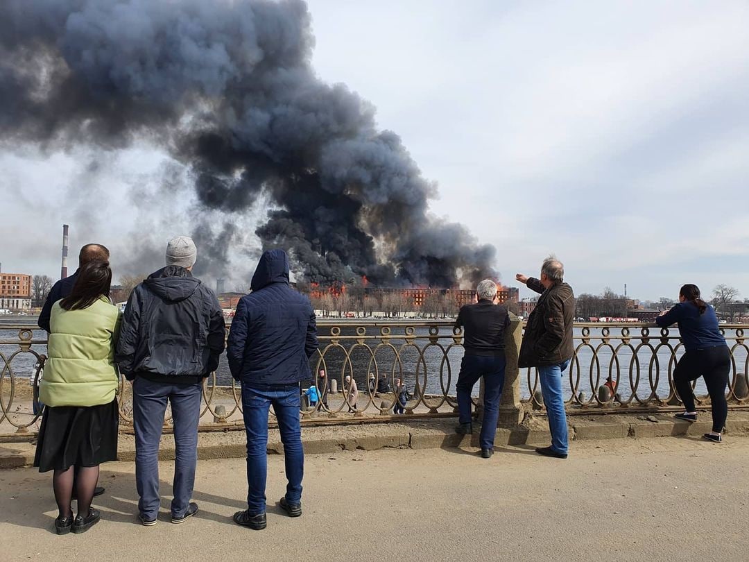 Пожар на фабрике «Невская мануфактура» на Октябрьской набережной начался днем 12 апреля. Пресс-служба ГУ МЧС по Петербургу впервые сообщила о возгорании в 12:52. К 14:26 горели четыре этажа по всей площади, там обрушились кровля и межэтажные перекрытия.