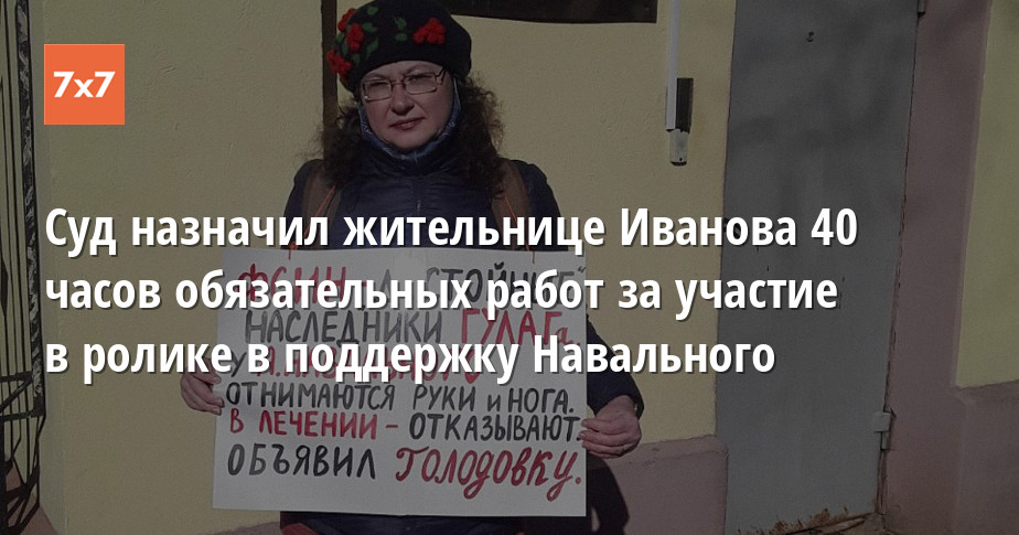 Суд назначил жительнице Иванова 40 часов обязательных работ за участие в ролике в поддержку Навального