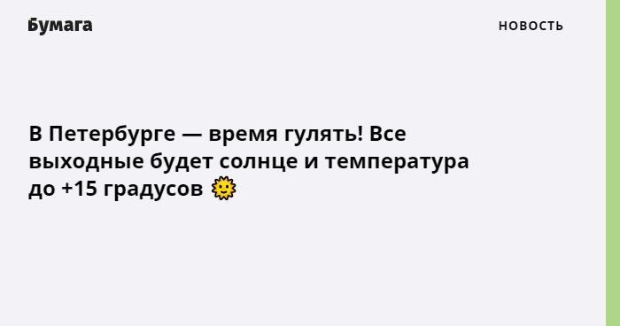 В Петербурге в выходные будет солнечно и тепло. Это следует из данных Гидрометцентра.