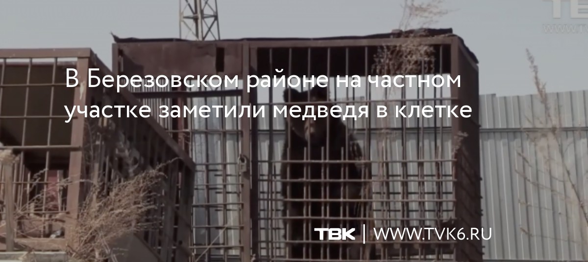 В Березовке на дворе частного дома заметили медведя, запертого в клетке. Животное выглядит здоровым и полным сил. На задних лапах от достигает почти 2 м. Косолапый пытался выбраться на волю: грыз прутья клетки и выдавливал крышу. В клетке медведь сидит в ошейнике.