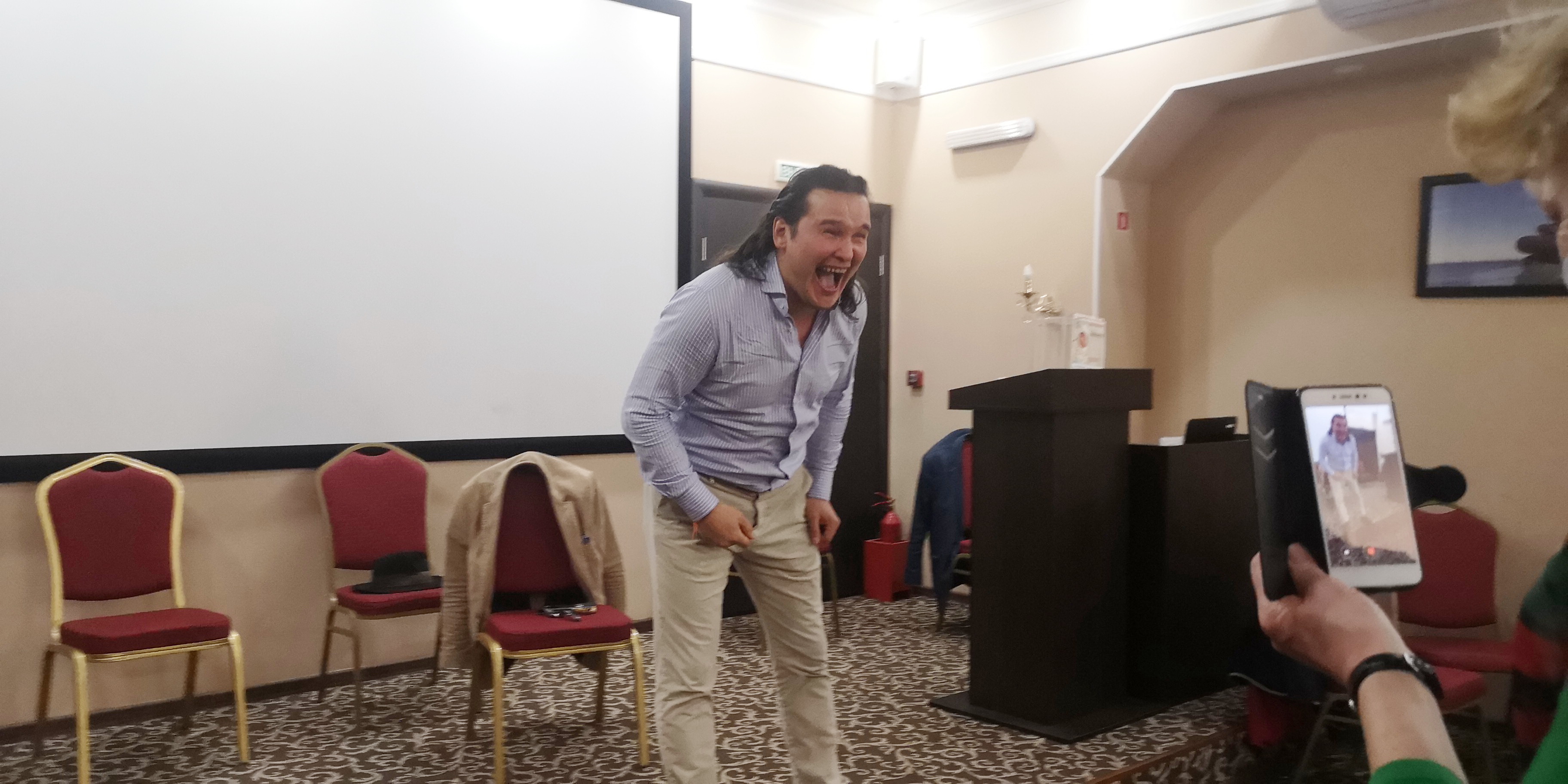 43-летний россиянин Дмитрий Ефимов стал первым чемпионом мира по смеху. В необычном соревновании, которое прошло 1 апреля, приняли участие 20 человек из разных стран. Участники в течение четырех часов должны были представить самые разные виды смеха – от сексуального до дьявольского. Дмитрий пересмеял всех, доказав, что его хохот самый продолжительный и заразительный. "Тренер по радости", как он сам себя называет, считает, что смешить людей – его призвание и великая миссия. Корреспондент Сибирь.Реалии побывал на тренинге, который чемпион по смеху провел в Бурятии.