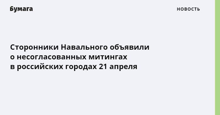 Сторонники Алексея Навального анонсировали новые несогласованные митинги. Они пройдут 21 апреля в центрах российских городов, сообщают представители оппозиционера.