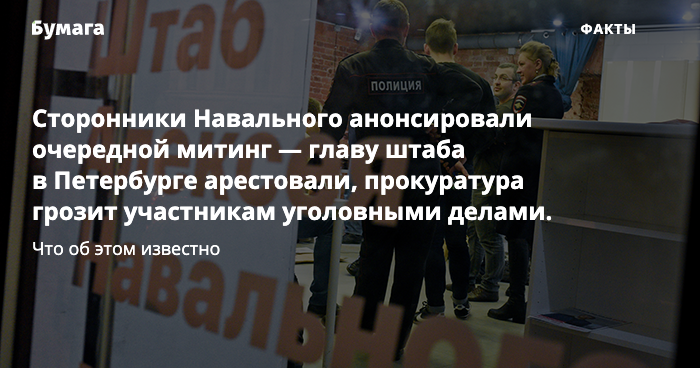 Сторонники Навального анонсировали очередной митинг — главу петербургского штаба арестовали, прокуратура грозит участникам уголовными делами