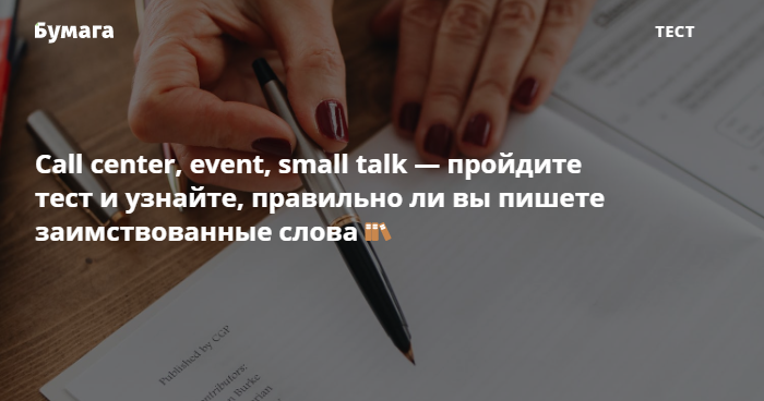 Call center, event, small talk — пройдите тест и узнайте, правильно ли вы пишете заимствованные слова 📚