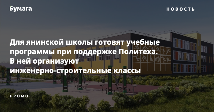 Для общеобразовательной школы, которую ГК «Ленстройтрест» возводит в голландском квартале «Янила» (микрорайон Янино), создают концепцию дополнительных образовательных программ при поддержке Санкт-Петербургского политехнического университета Петра Великого.
