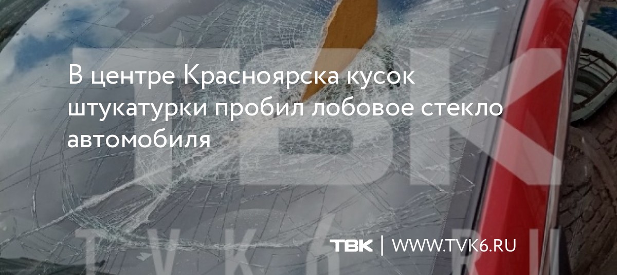 В центре Красноярска кусок штукатурки пробил лобовое стекло автомобиля
