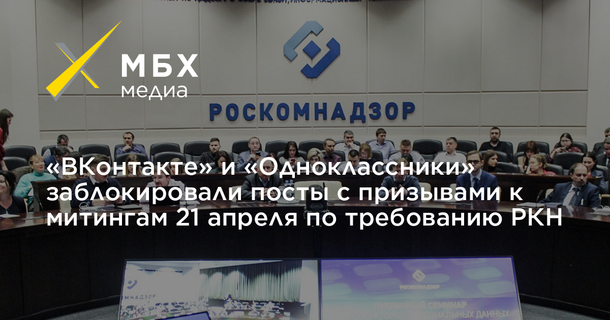 «ВКонтакте» и «Одноклассники» заблокировали посты с призывами к митингам 21 апреля по требованию РКН